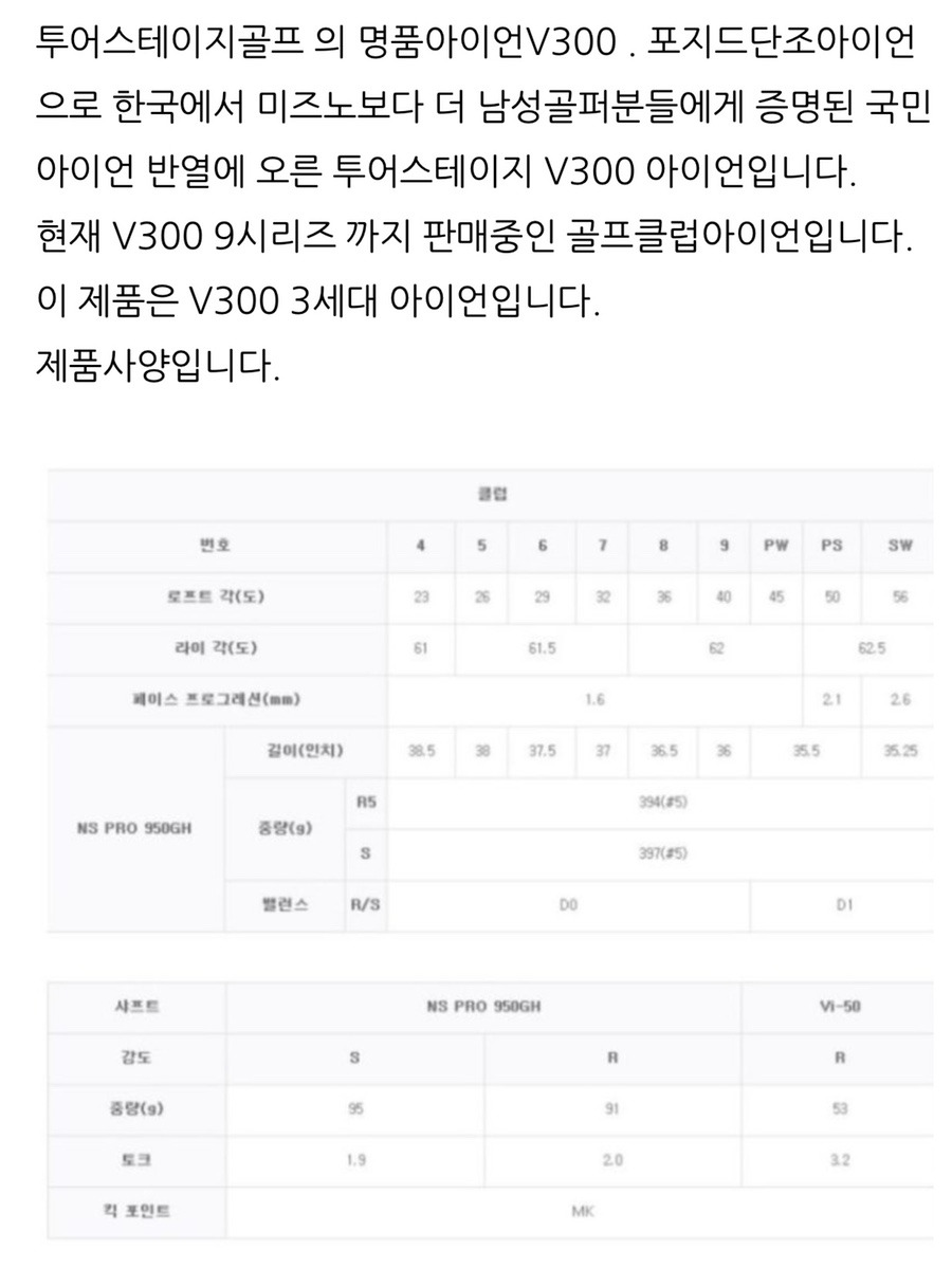 국민아이언 V300 포지드 남성용 아이언으로 골프시작과 동시에 싱글골퍼로 거듭나는 치기쉽고 손맛좋고 방향성좋고 타구음 좋고, 두루두루 겸비한 대표적 골프아이언입니다.