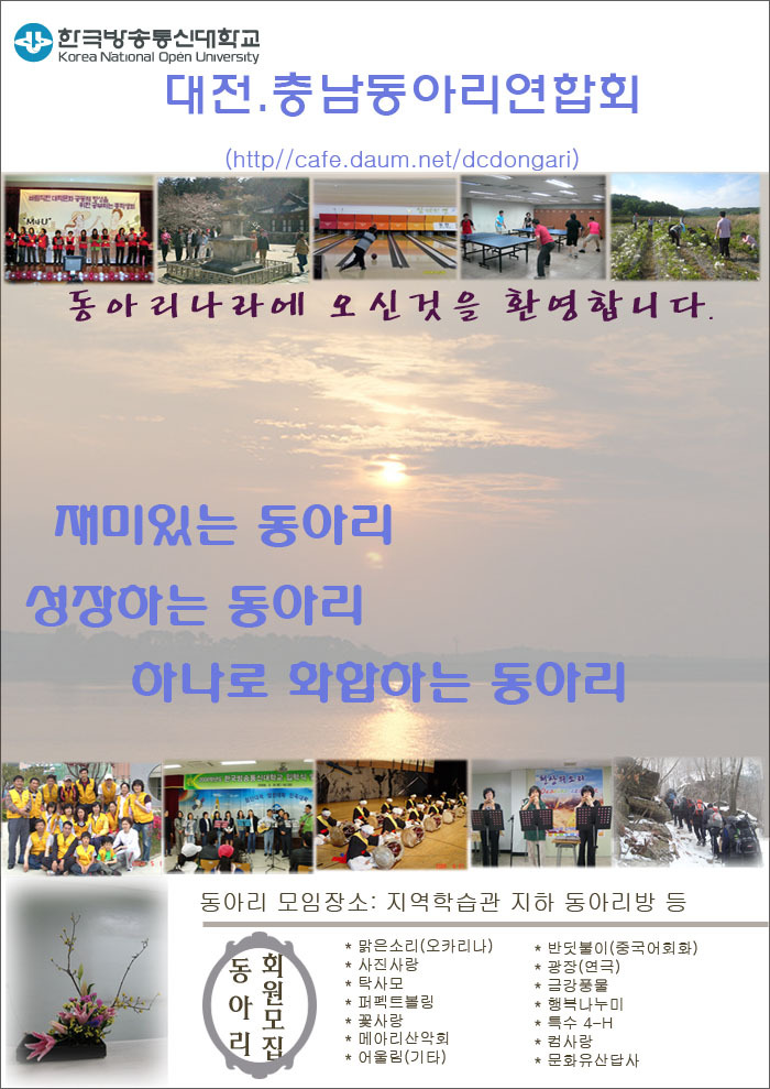 [스크랩] 방송대 대전충남동아리연합을 소개합니다. 작성자전근식(행정05)|작성시간10.02.23|조회수81 목록 댓글 0 글자크기 작게가 글자크기 크게가 다음검색 스크랩 원문 : 대전충남동아리연합회 현재 게시글 추가 기능 열기 북마크 공유하기 신고 센터로 신고 댓글 댓글 0 댓글쓰기 답글쓰기 댓글 리스트