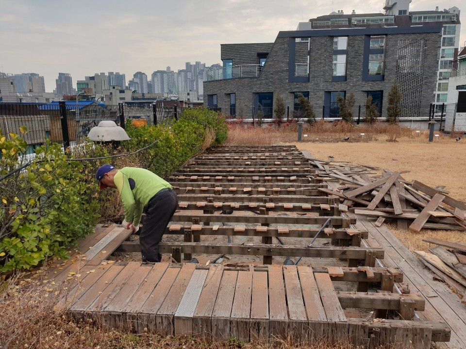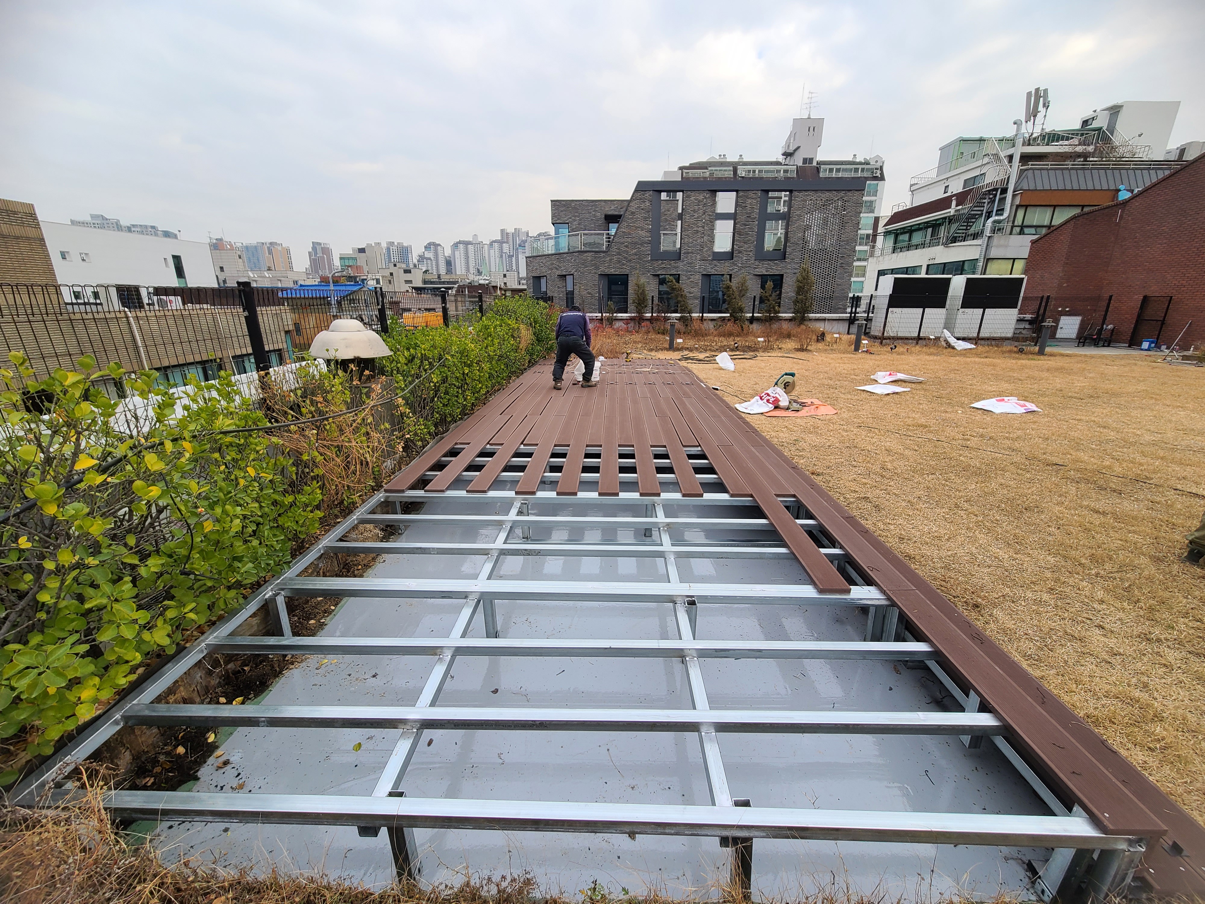 옥상 데크 썩은 곳 썩지 않는 데크재로 이렇게 교체 하네요
