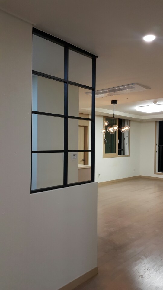 기존에 창고로 출입하던 문은 벽으로 막지 않고 예쁜 유리가벽을 만들었습니다.