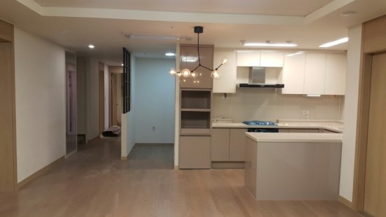 어린 자녀가 있는경우 주방에서 가사를 하면서 거실에 있는 아이들을 돌봐줄 수 있기때문에 인기가 많은 구조입니다.