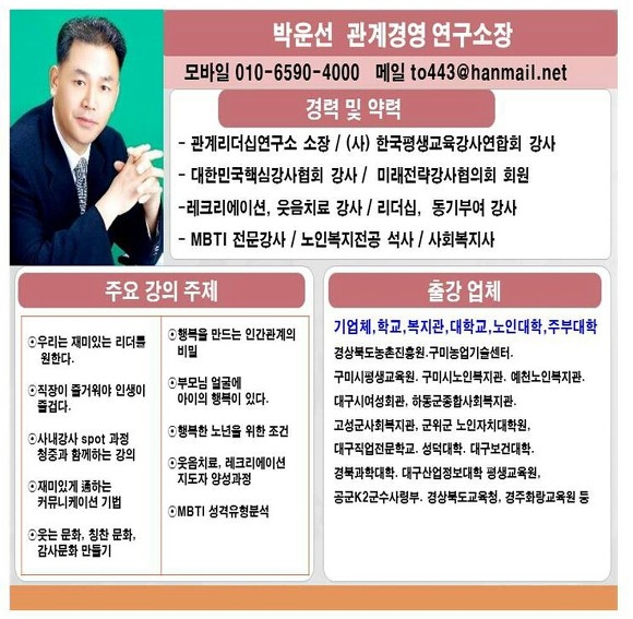 ☆관계 경영연구소☆ 박운선 소장 2시~2시50분^^50분 특강