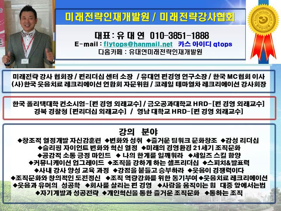 대상☆웃음치료사, 레크리에이션강사,산업강사,