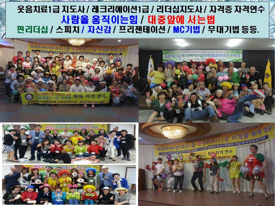 레크리에이션 지도사1급 / 웃음치료1급 / 리더십1급