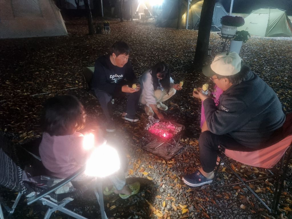 텐트가 조끔 걱정이긴 한데 다행이 비가 그쳐 불멍과함께 오손도손 이야기꽃도 피우고 고구마도 구워먹고 또 한장의 추억을 남기네요