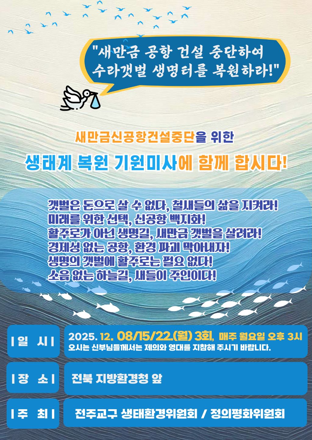 새만금 건설 중단과 생태계 복원을 위한 기원미사 안내 작성자김은희(마리스텔라)|작성시간25.12.16|조회수18 목록 댓글 0 글자크기 작게가 글자크기 크게가 다음검색 현재 게시글 추가 기능 열기 북마크 공유하기 신고 센터로 신고 댓글 댓글 0 댓글쓰기 답글쓰기 댓글 리스트