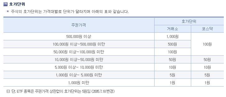 마지막으로 아래 사진은 호가 단위표 입니다.... 참고 하시기 바랍니다...