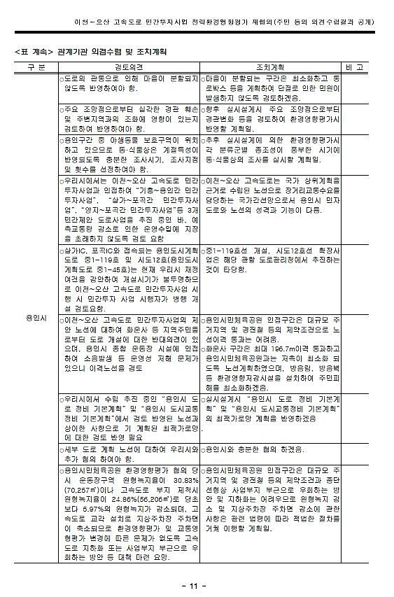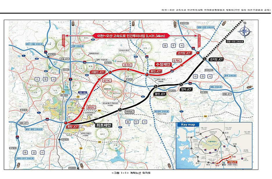 문서를 보면 용인시가 최초 노선대로 변경을 요구하고 있습니다. 용인 관내 민자사업인 용인-기흥 민자도로와 중복되기 때문입니다.
