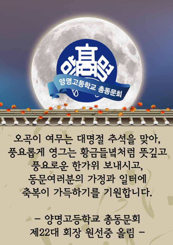 2016년 9월 풍요로움이 가득한 추석 명절 보내세요.. 작성자사무장2|작성시간16.09.13|조회수180 목록 댓글 0 글자크기 작게가 글자크기 크게가 다음검색 현재 게시글 추가 기능 열기 북마크 공유하기 신고 센터로 신고 댓글 댓글 0 댓글쓰기 답글쓰기 댓글 리스트