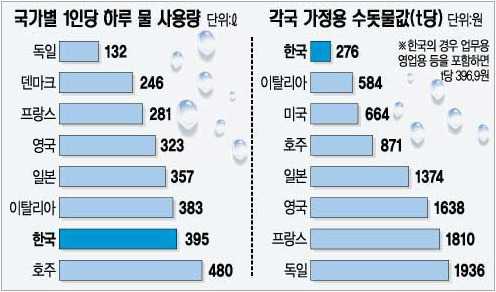 ▲ 자료출처 : 동아닷컴>뉴스>사회 [목타는 국토-5] 한국인 하루 395리터 '펑펑'
