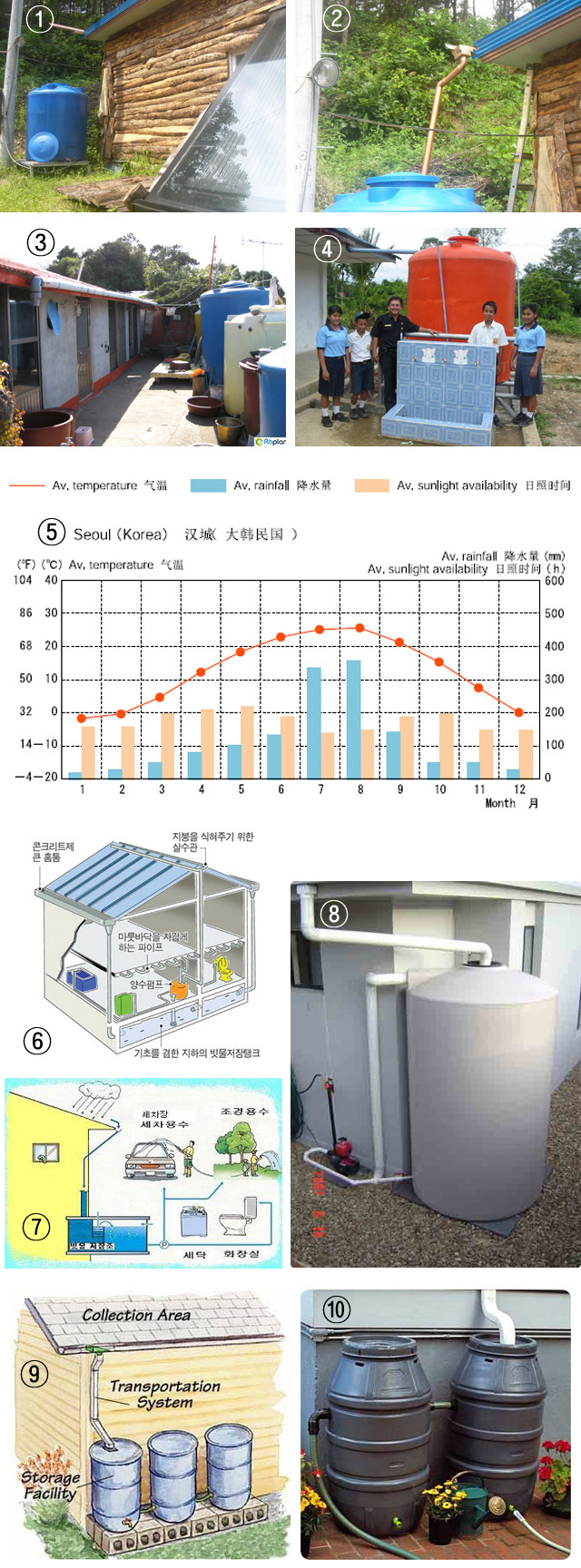 (사실 빗물의 저장용기는 외부의 빛을 차단하고 서늘한 곳에 설치하는 것이 좋으므로 지하실 저장고의 형태가 가장 적합)
