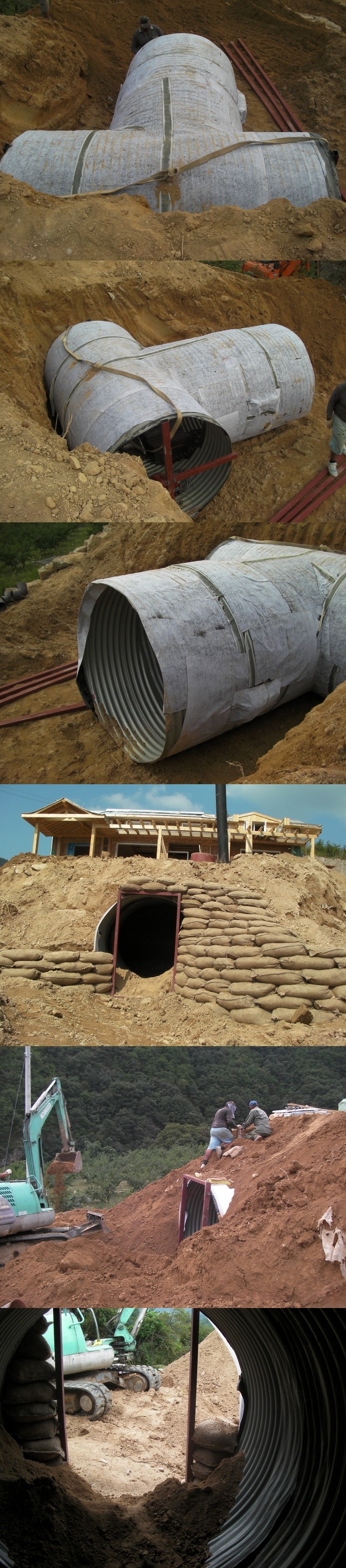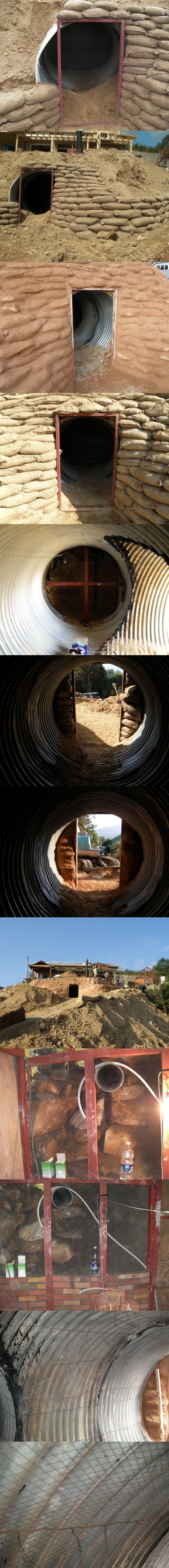 토굴 재료로는 "파형강판" 을 직경 1.7m, 강판의 두께 3.2mm, 총 길이 8m로 주문 제작하여 정원 부지 밑을 파고 설치 후 묻었다.
