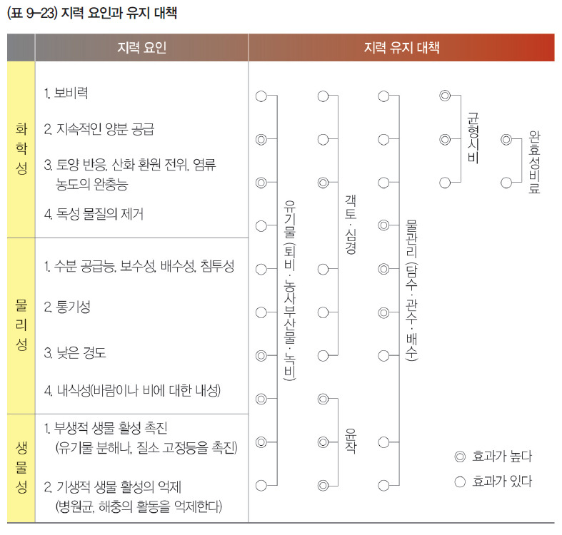 필요하다. 재배지의 지력 유지는 뿌리를 건전하게 하여 작물생육을 안정시키고 수량과 품질 저하를 막을 수 있다.