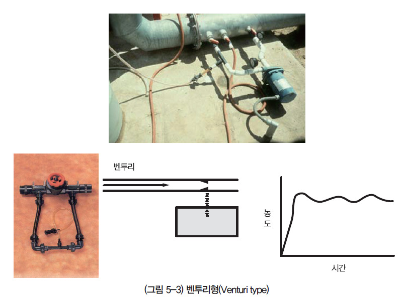 높아지므로 그 지점에 홉입관을 연결하여 비료액을 흡입시키는 방법이다.