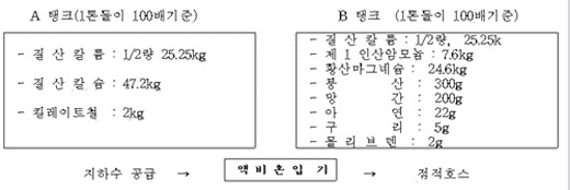 (그림 2) 토마토 전용 배양액에 대한 원액 조제 요령 및 액비혼입 개략도 |