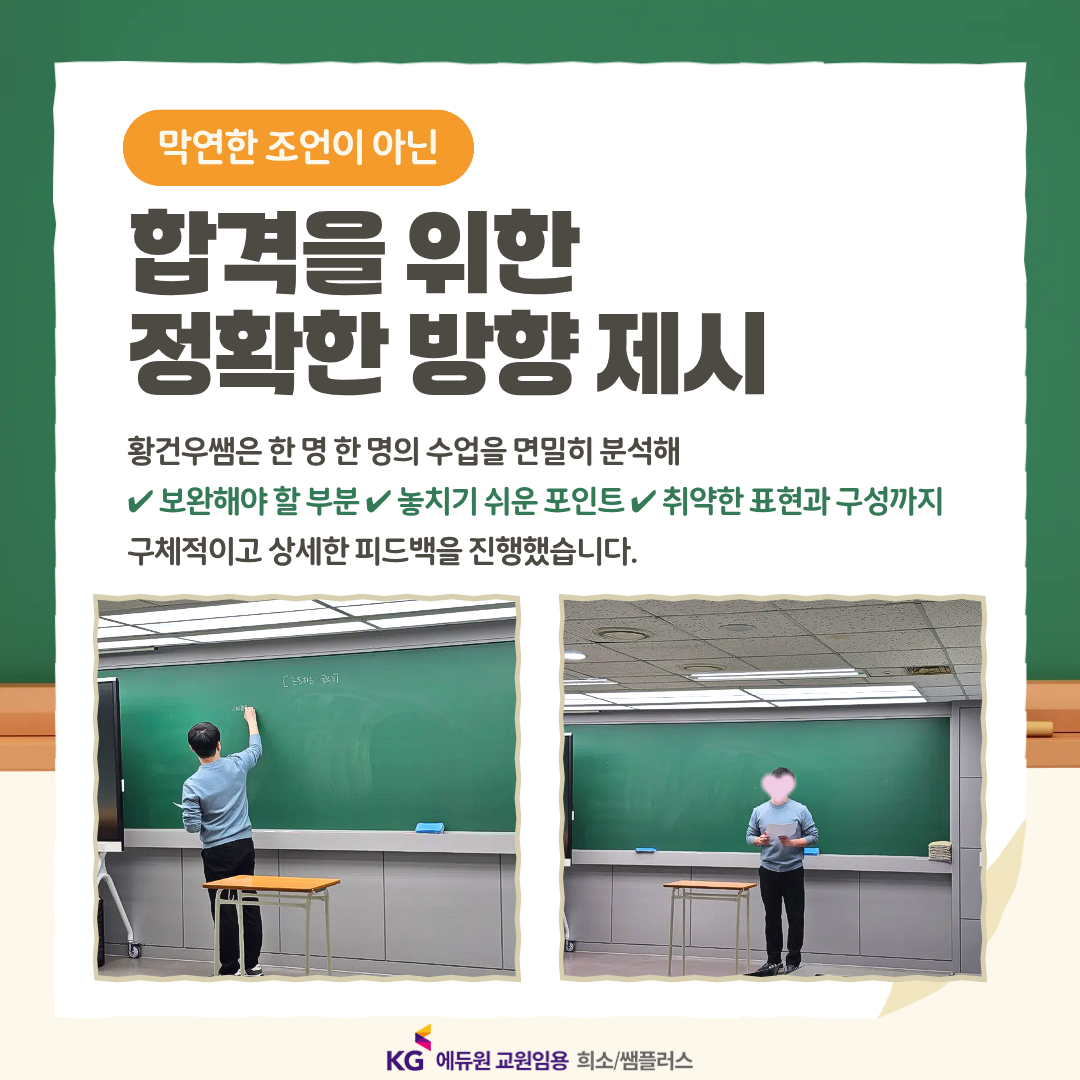 황건우쌤이 예비쌤 한 명 한 명의 수업을 면밀히 분석해