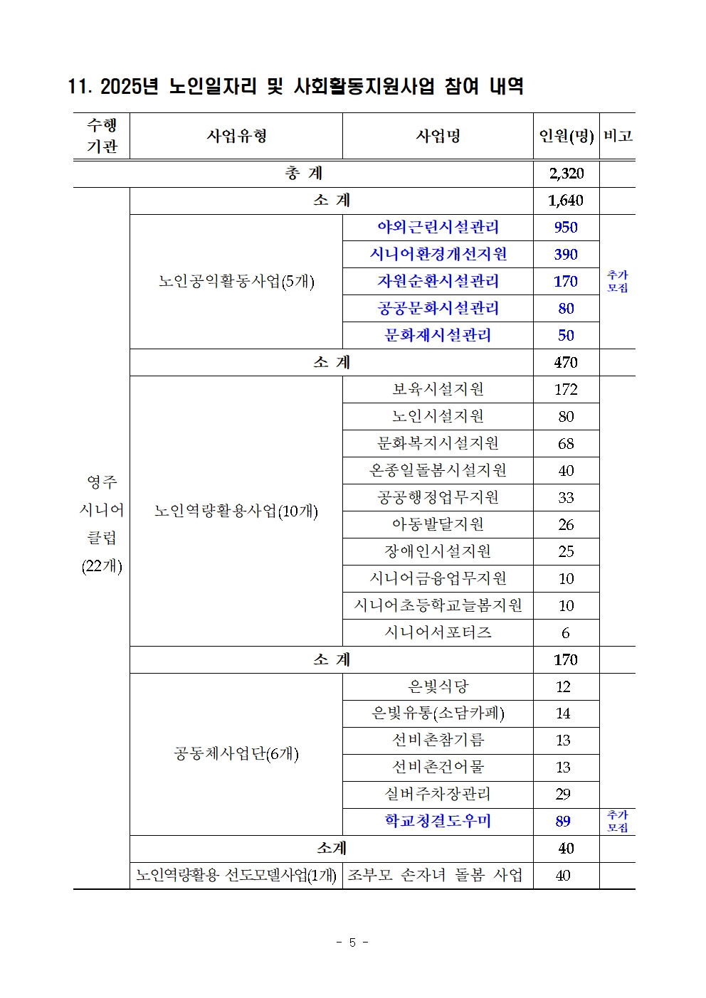 2025년 노인일자리 및 사회활동지원사업 참여자 추가 모집 공고