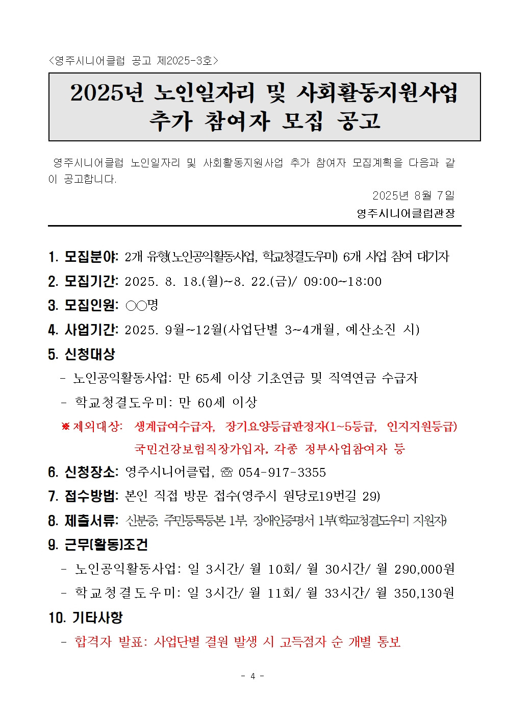 6. 신청장소 : 영주시니어클럽, ☏ 054-917-3355
