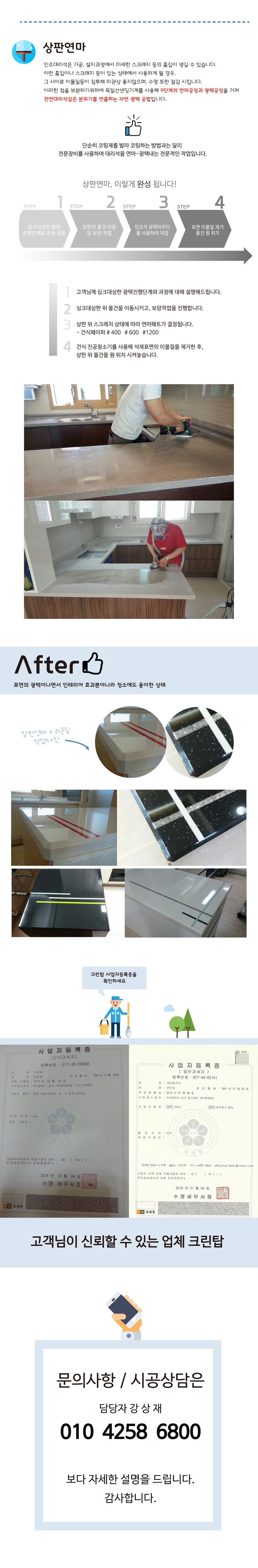 (크린탑 홈케어) 입주청소 줄눈시공 상판연마 마루코팅 전문시공기업!현장에서 열심히 시공중에 있습니다! 작성자크린탑|작성시간19.01.14|조회수33 목록 댓글 0 글자크기 작게가 글자크기 크게가 다음검색 현재 게시글 추가 기능 열기 북마크 공유하기 신고 센터로 신고 댓글 댓글 0 댓글쓰기 답글쓰기 댓글 리스트