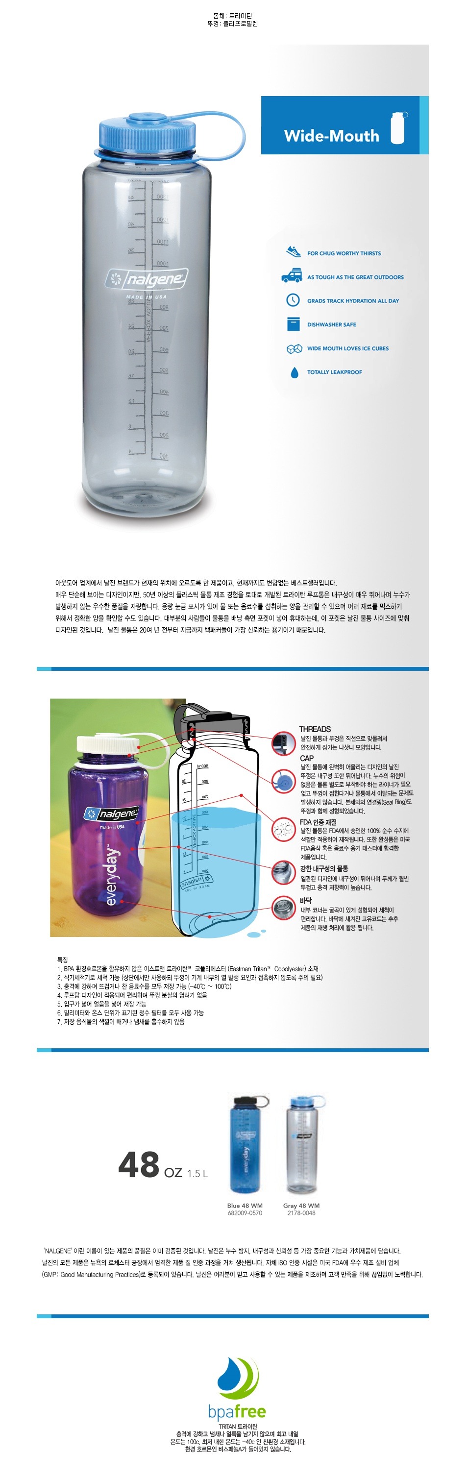 | NALGENE 병은 BPA 무료입니다. 비스 페 놀 A 등의 화학 물질을 포함 하지 않는 안전한 소재입니다. ●도 하지 않는 자체 캡 시스템. 뚜껑의 밀착 고리가 본체 테이퍼 食い込み, 누출을 방지 합니다. ● 캡의 개폐는 360도 회전에서 360도 회전 반 덜 수 있습니다. ● 균일 한 두께로 균열 및 손상에 강하다. ● 플라스틱 본체의 냄새도 거의 없고 음료에도 플라스틱 냄새가 품 없습니다.