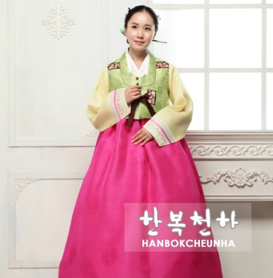 옛부터 가장 아름다운 옷으로 여긴 녹색 저고리에 붉은치마 이지요...