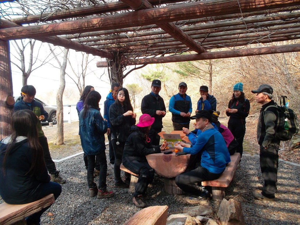 석정화군이 찬조한 맛있는 귤을 나누며, 하산의 개운함을 마무리