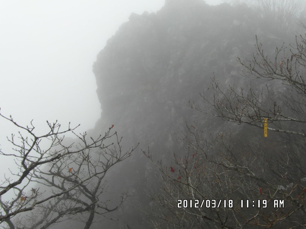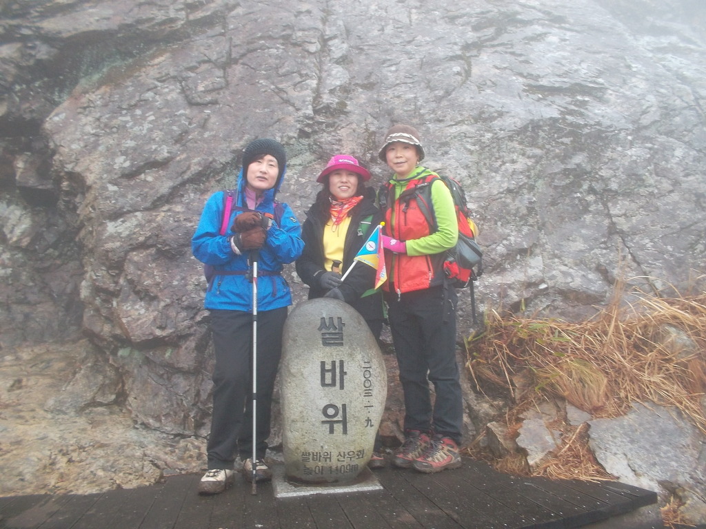 출발은 안개, 쌀바위쪽에는 안개비에 질퍽거림, 정상쪽에는 눈과 비바람,