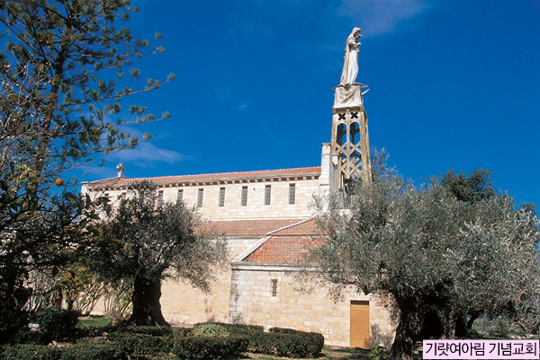 이곳의 교회지붕 위의 정면에는 아기예수를 안은 마리아 상이 조각되어 예루살렘을 향하여 바라 보도록