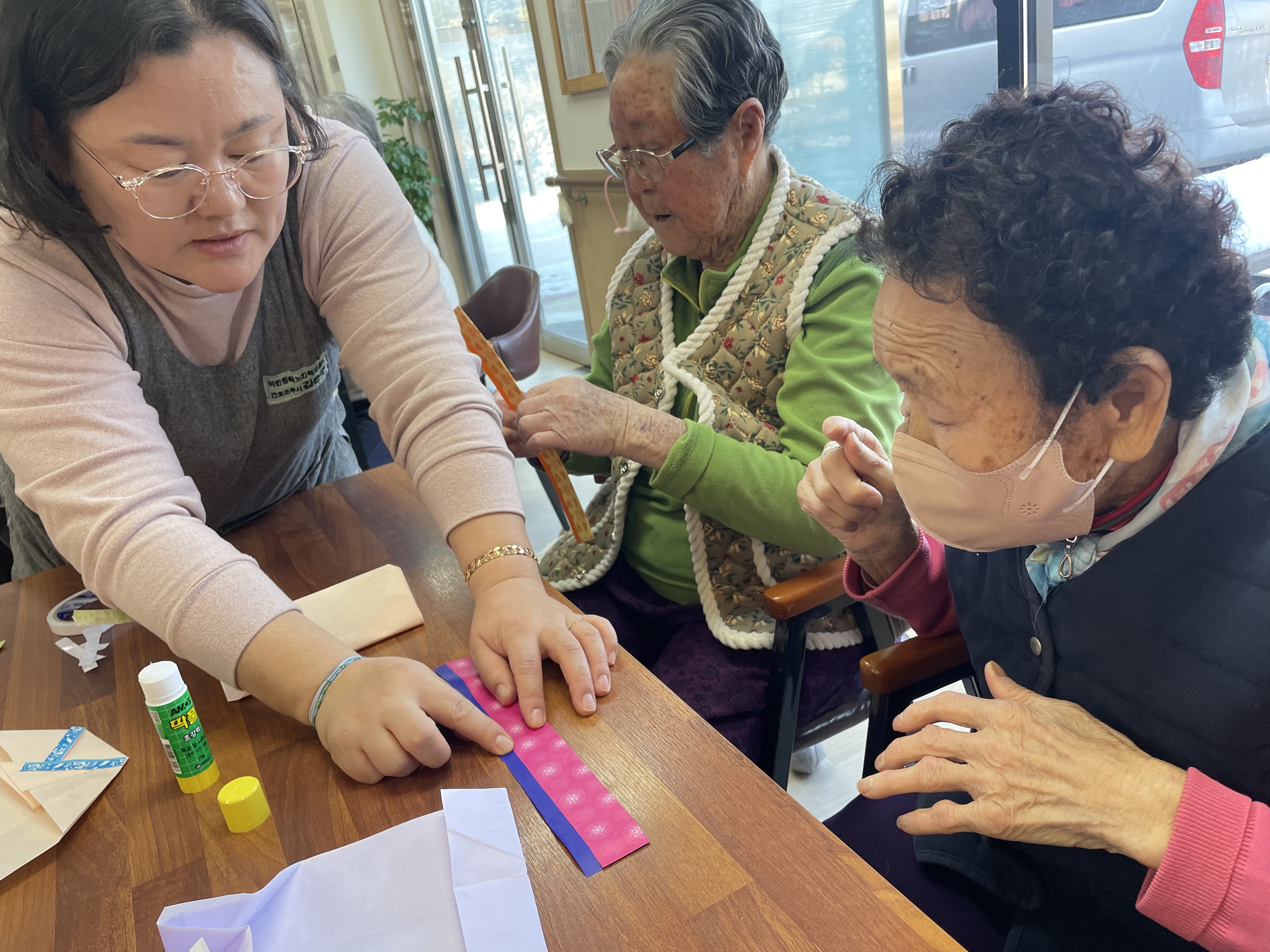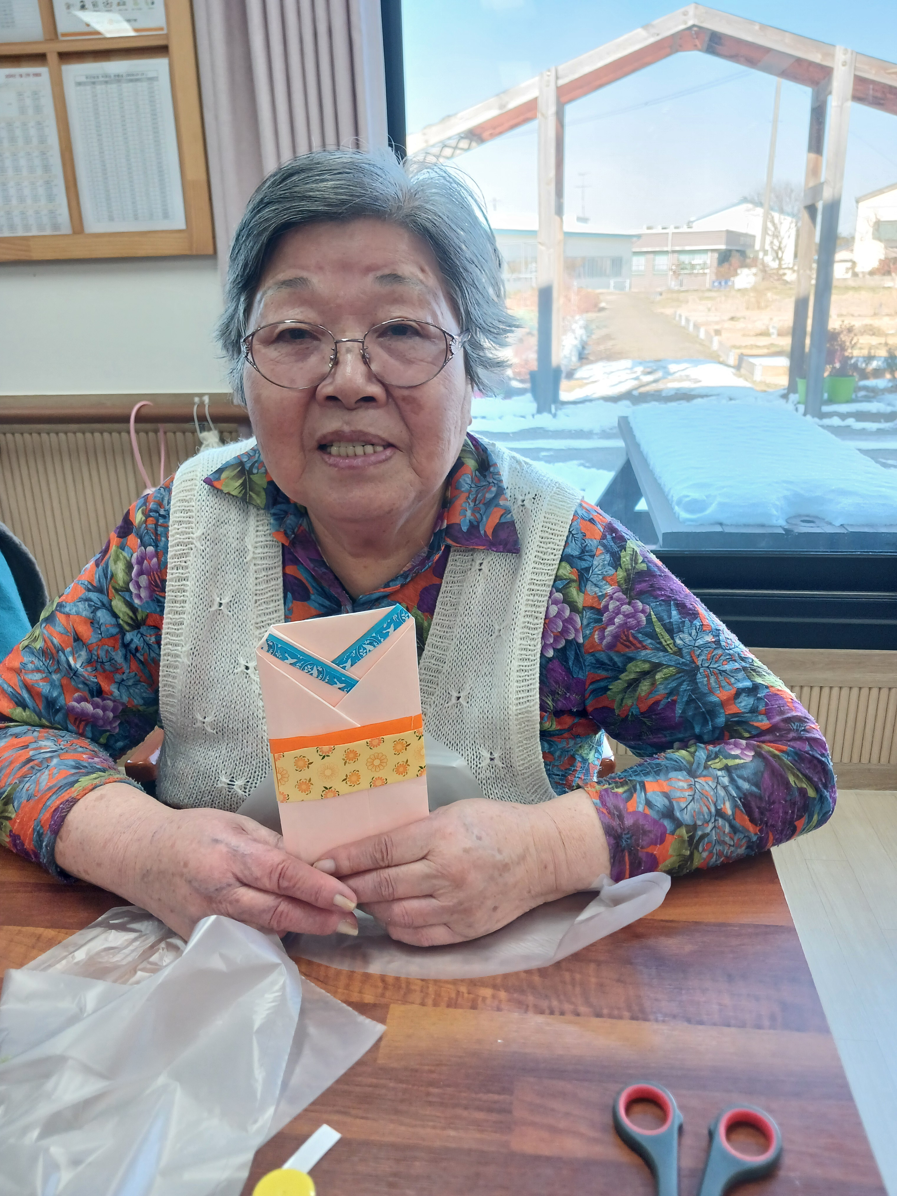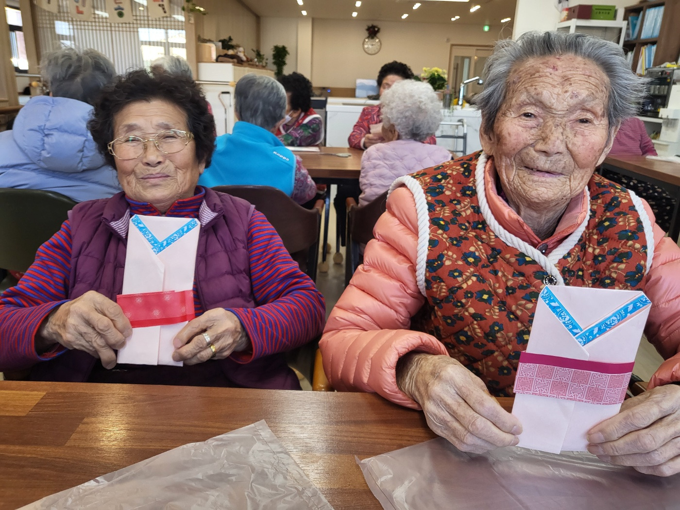 어르신들께서 직접 봉투를 접고, 색종이로 모양을 꾸몄습니다.