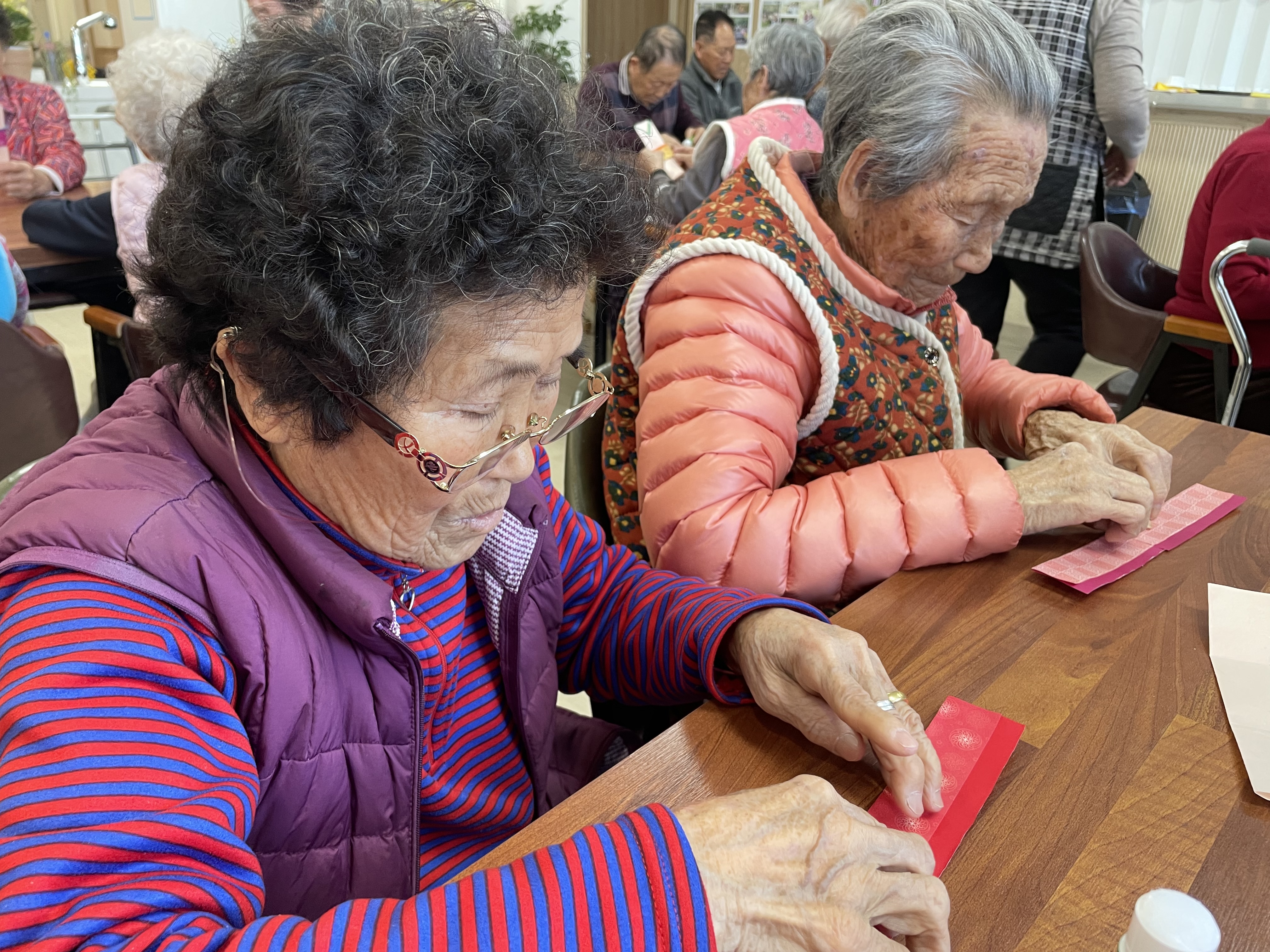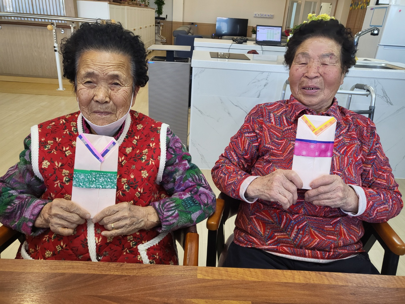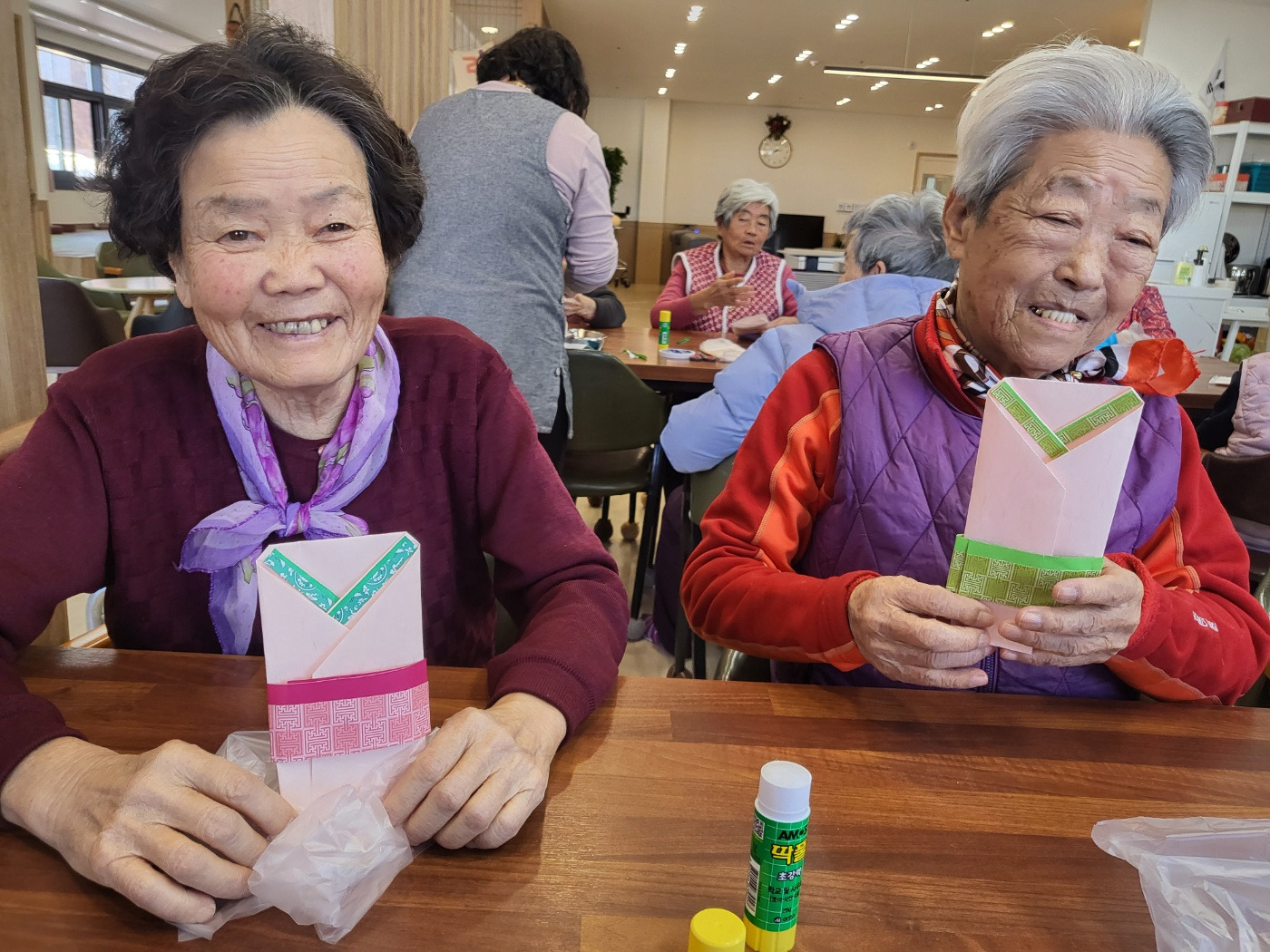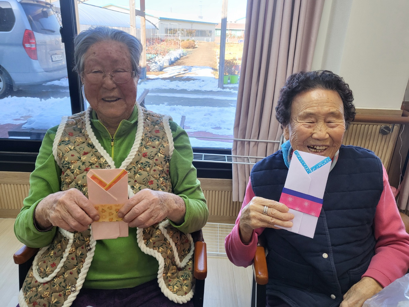 어르신들께서 직접 봉투를 접고, 색종이로 모양을 꾸몄습니다.