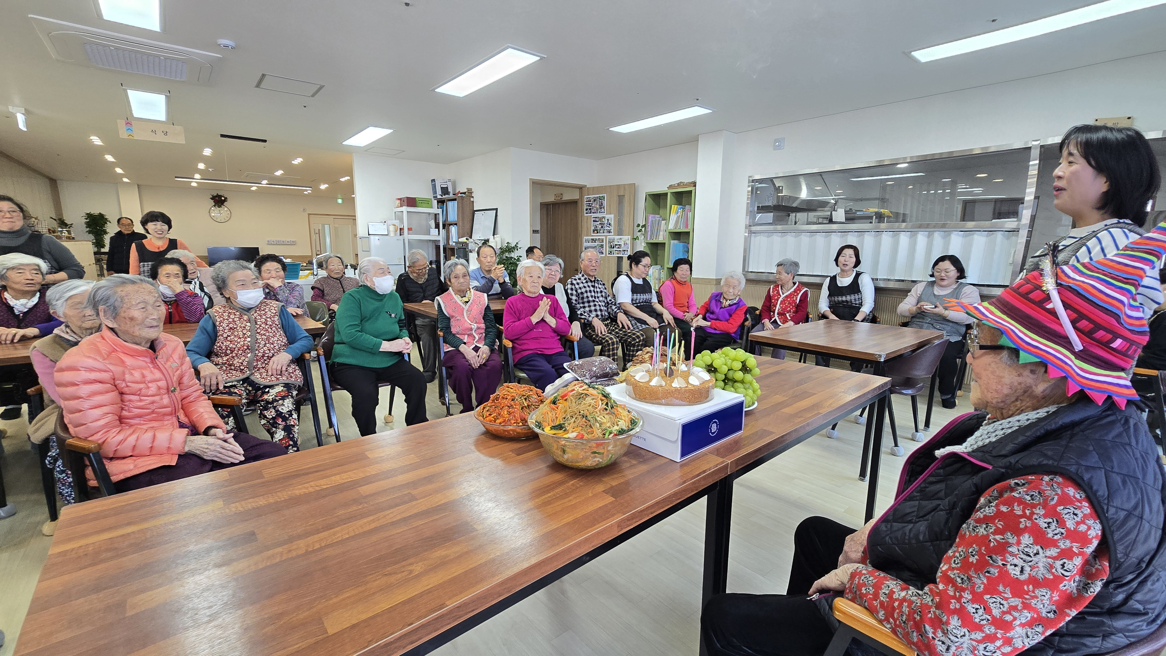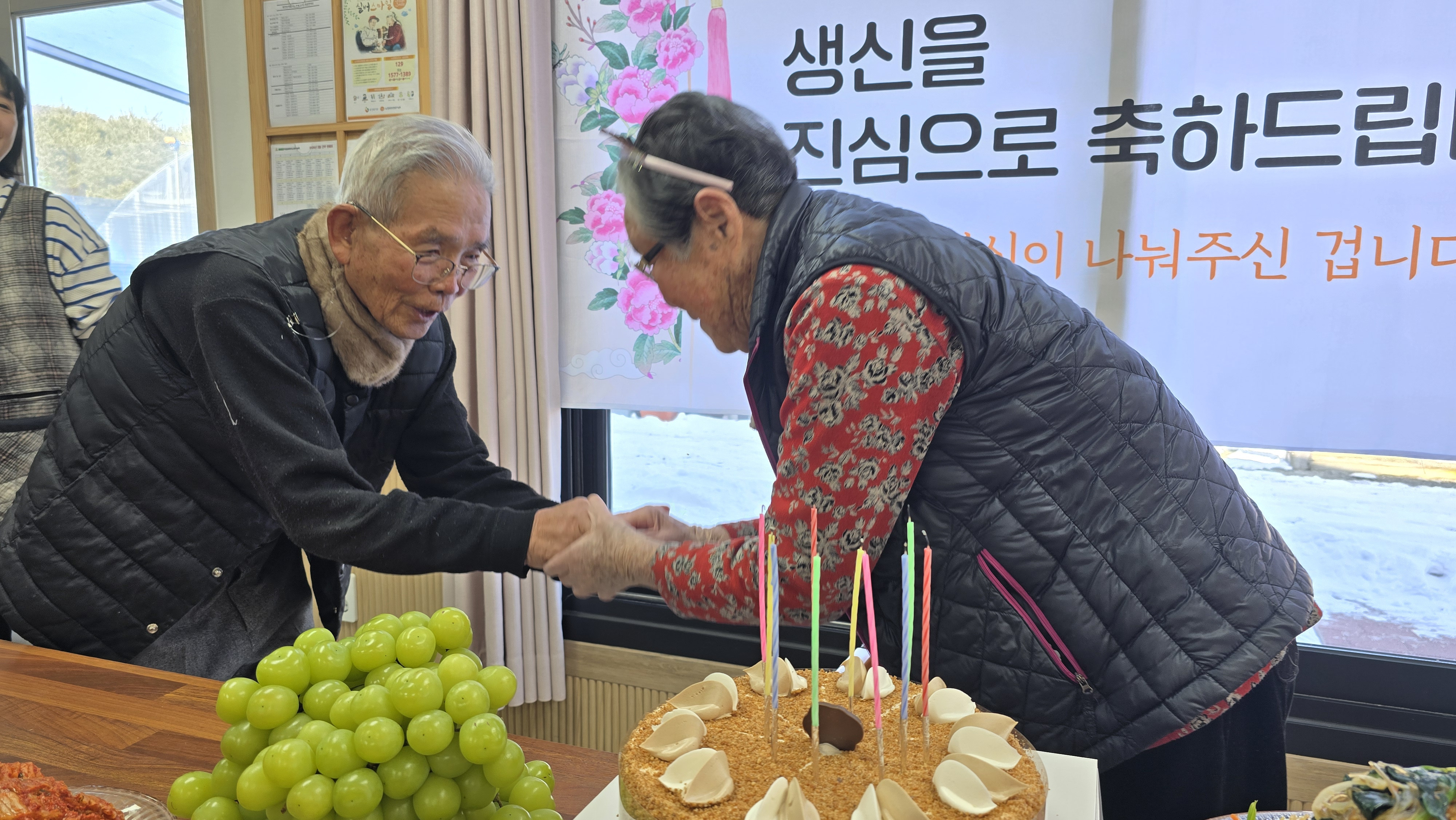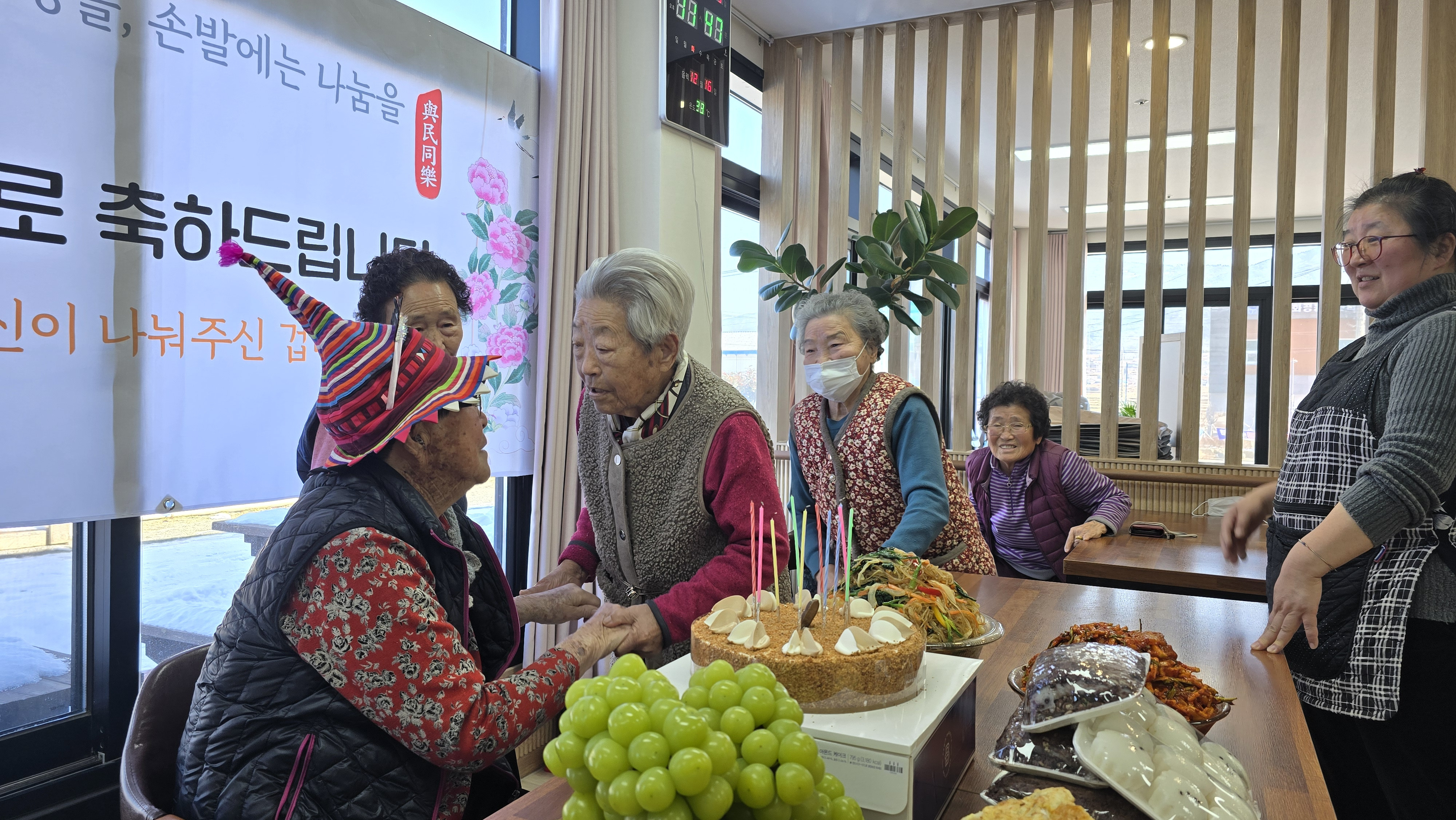생신축하노래를 부르고,