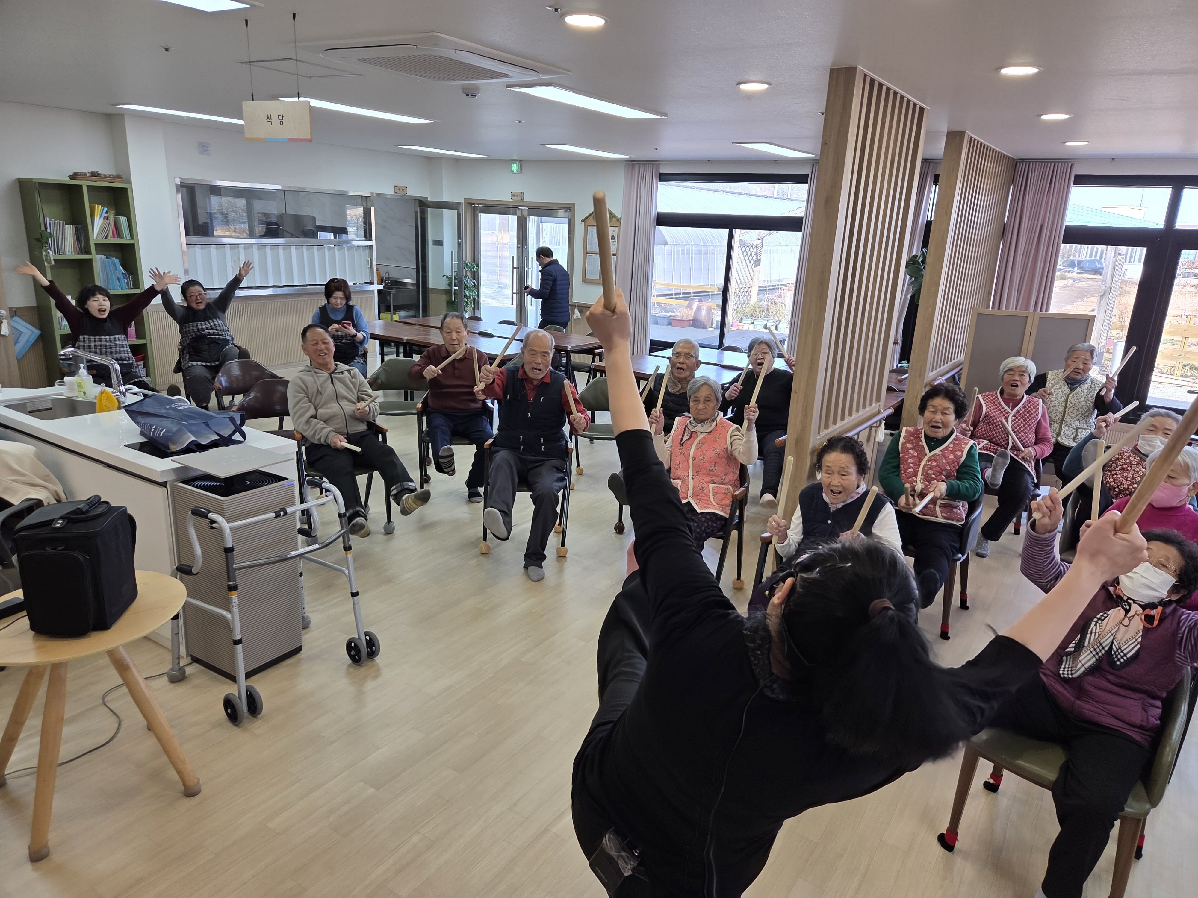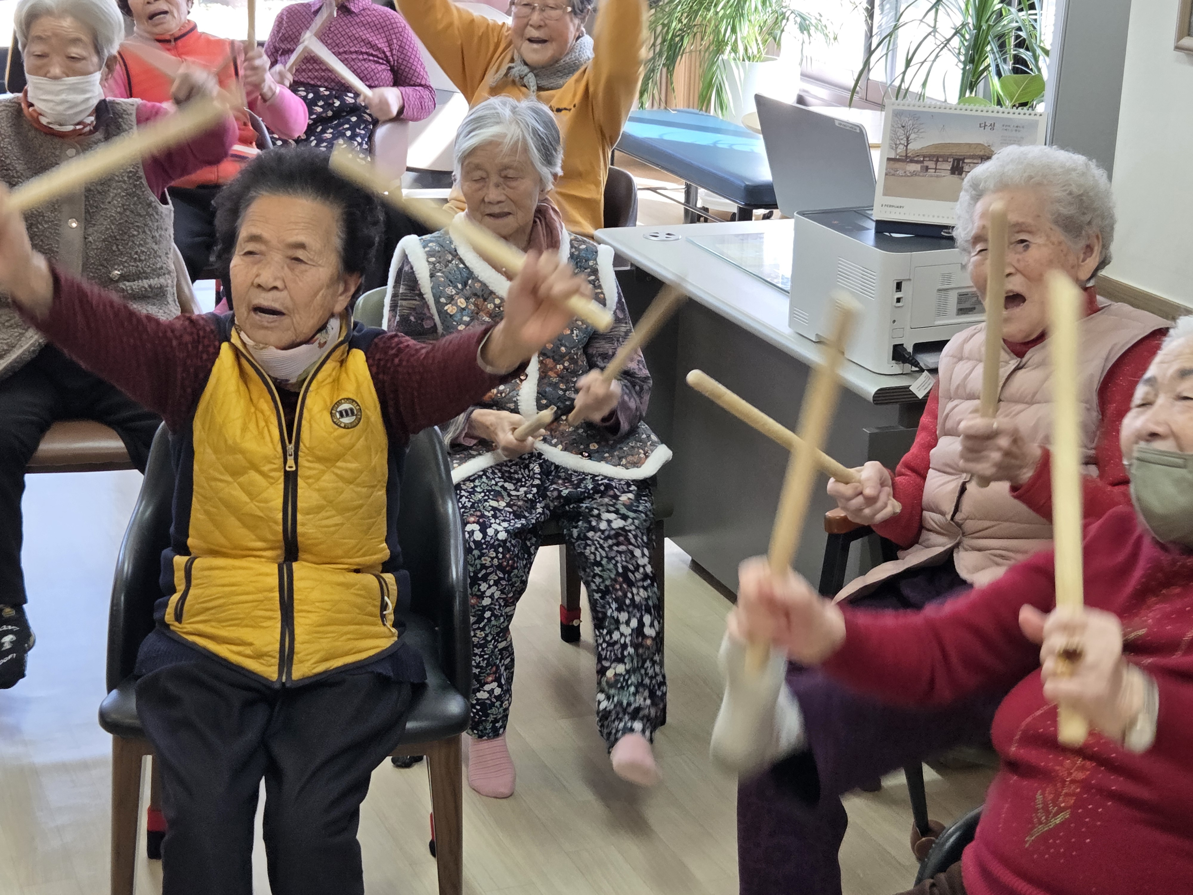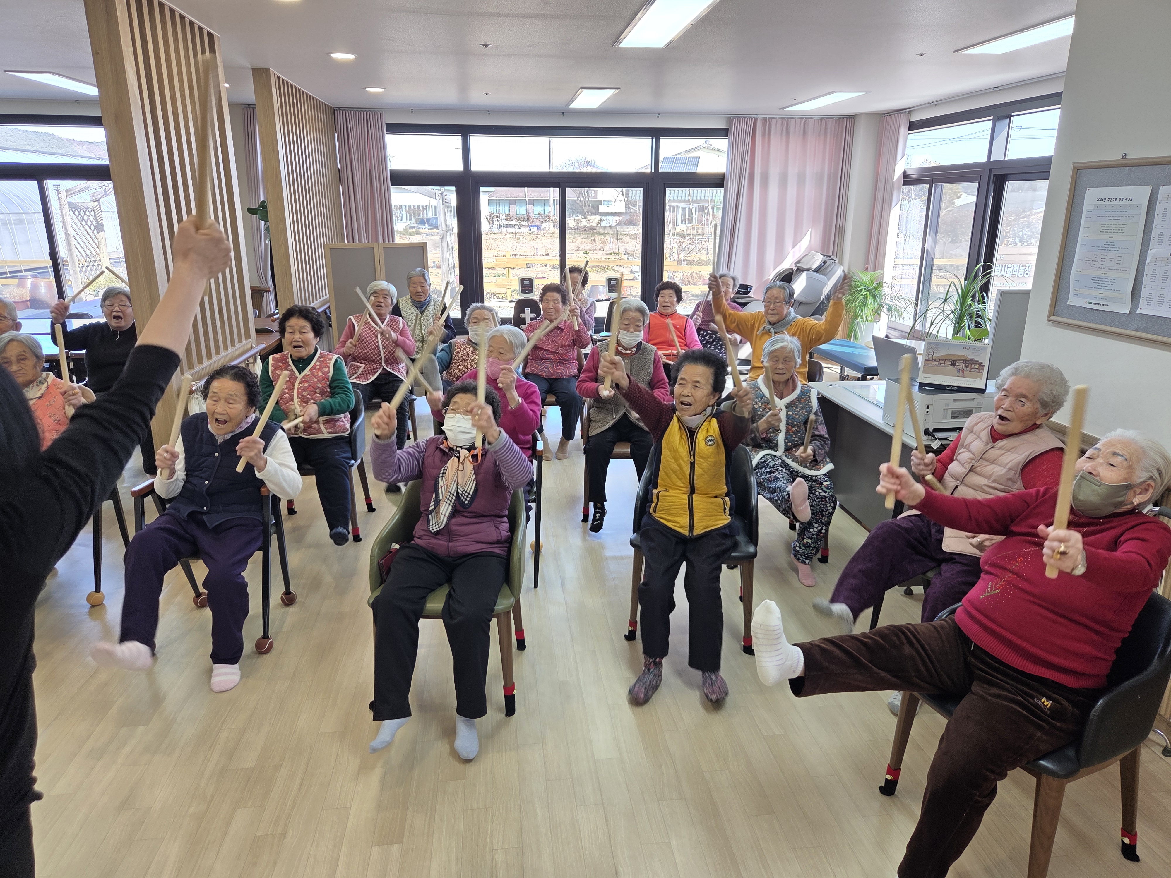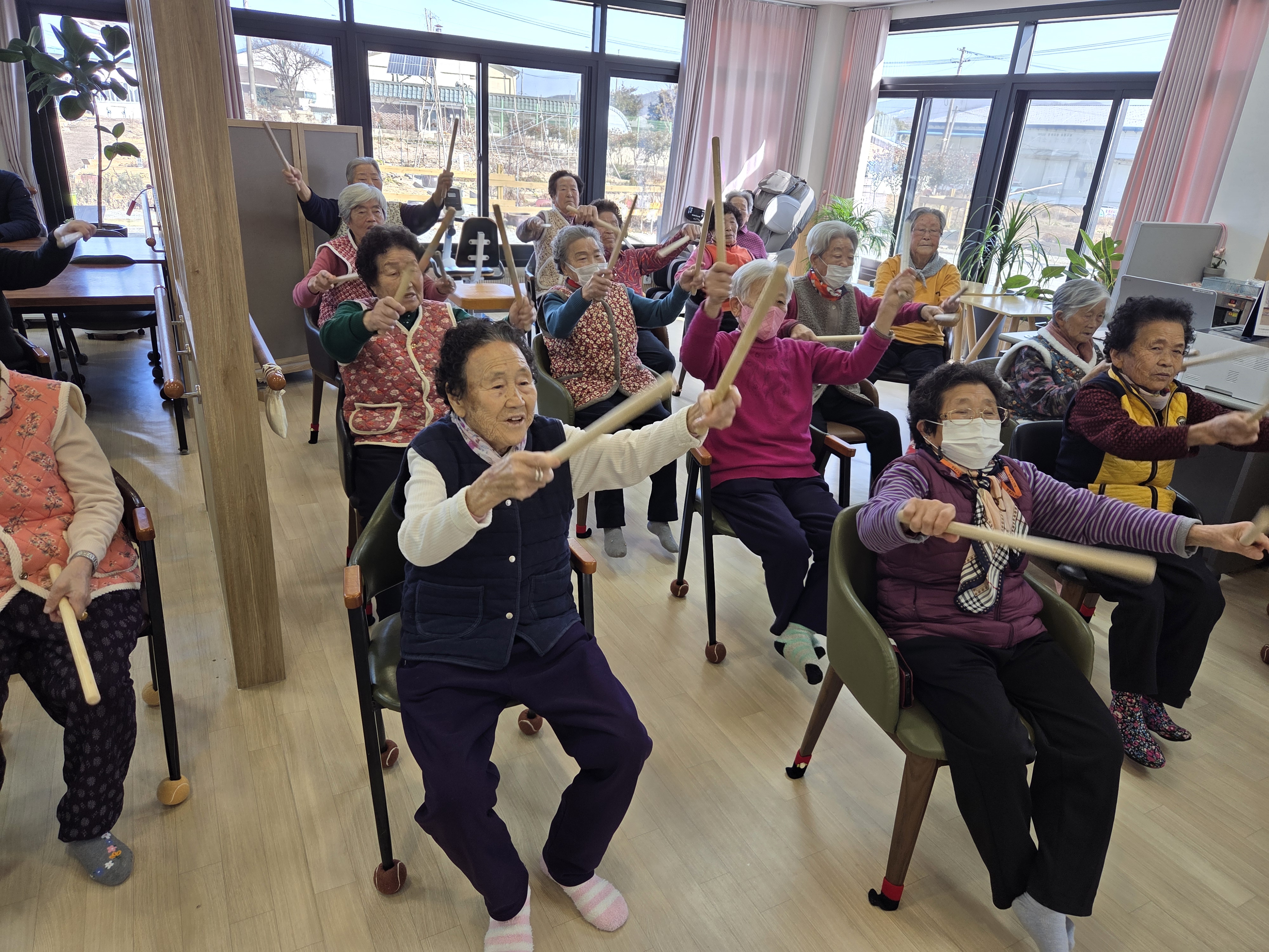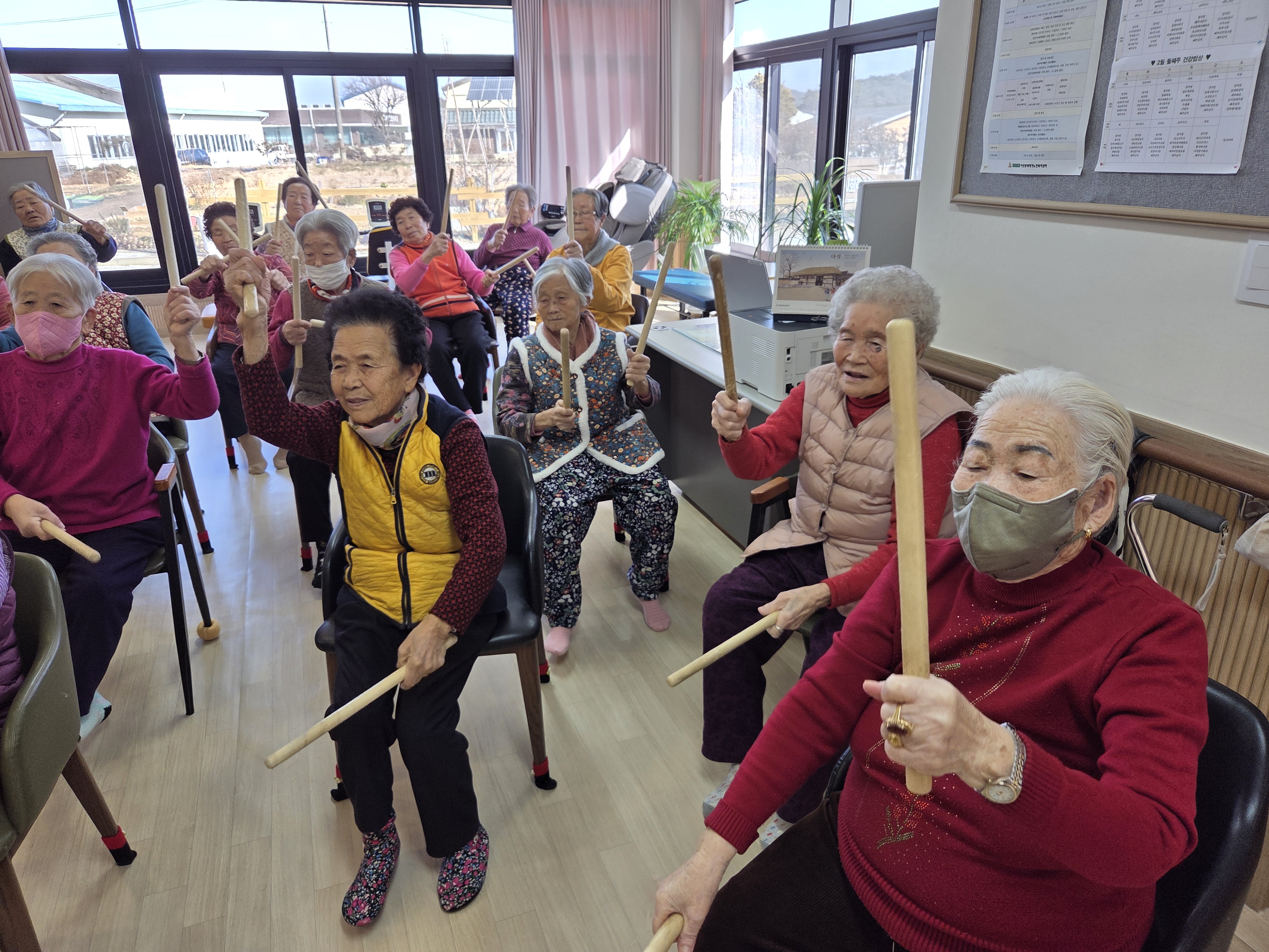 막대기를 활용해서 신나는 트로트 음악에 맞춰