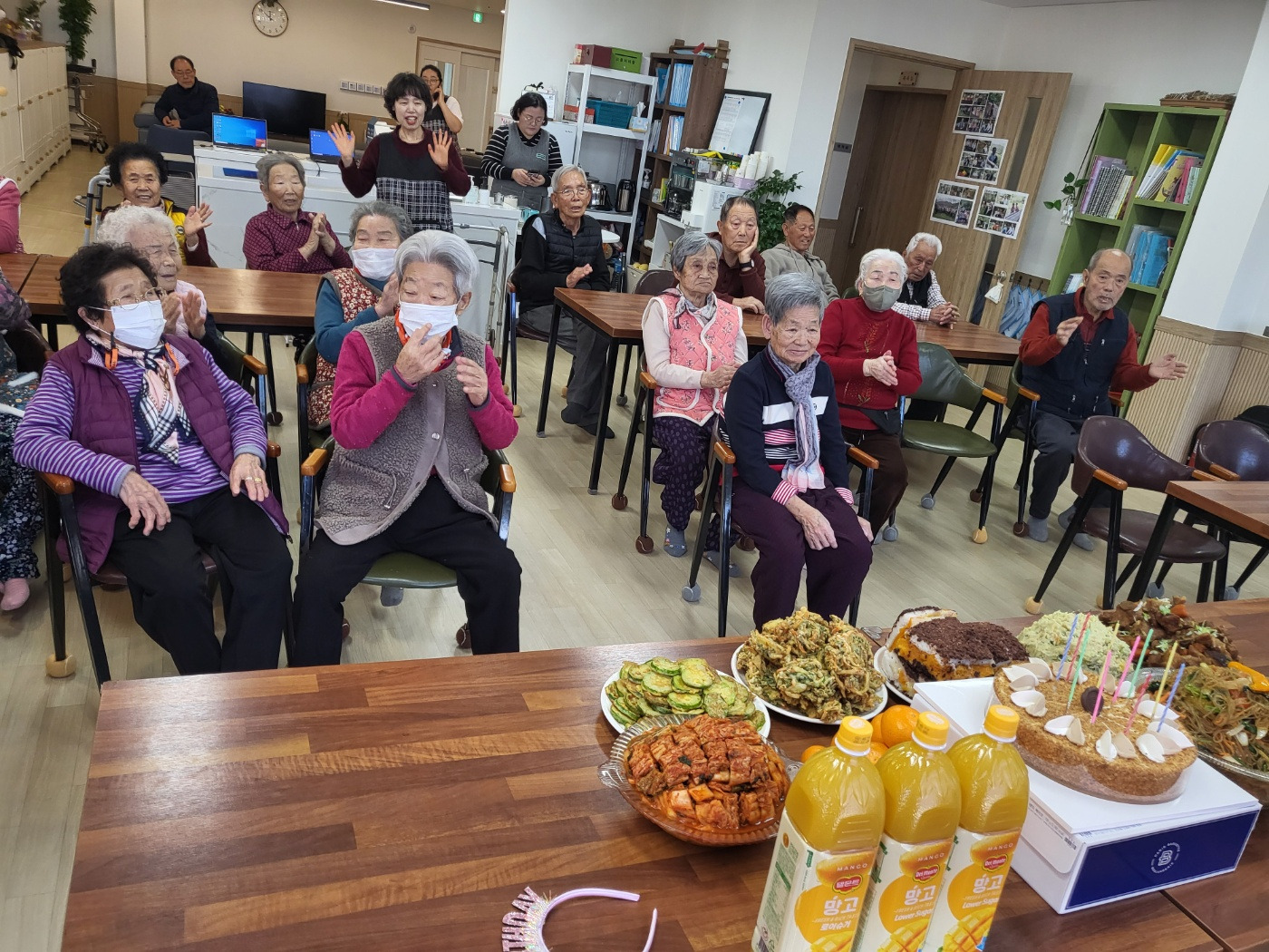 다른 어르신들께서도 박수치며 함께 축하해 주시고, 따뜻하고 웃음 가득한 분위기 속에서 의미 있는 시간을 보냈습니다.