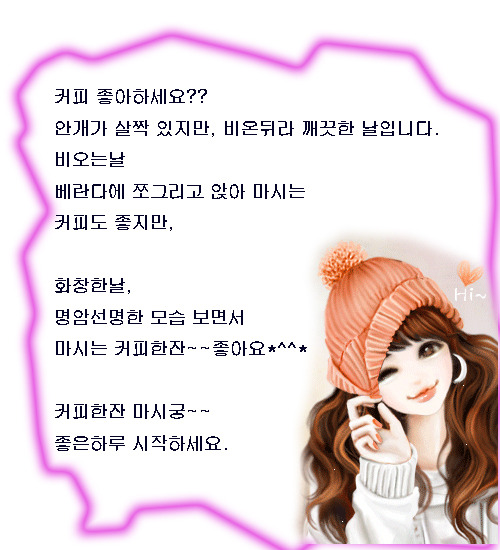 작성자나누리 작성시간 10.05.23 좋은 님과의 커피 한잔은 마음까지 그윽한 향기로 물들여 준답니다. 음~~ 이 향기.. 그대에게 전합니다. ^^