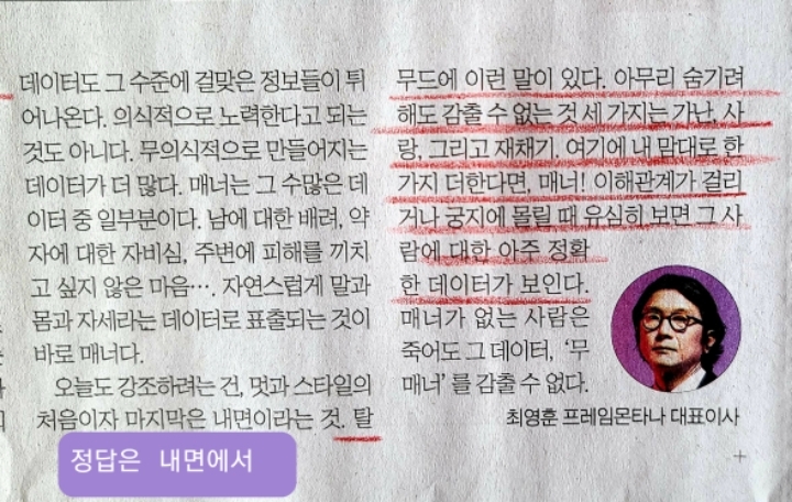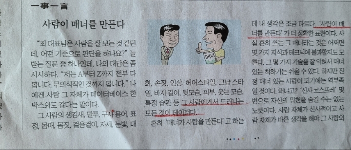 아무리 숨기려해도 감출수 없는 것 세가지 작성자도예(到叡)|작성시간20.06.11|조회수315 목록 댓글 2 글자크기 작게가 글자크기 크게가 [일사일언] 사람이 매너를 만든다 출처 : 조선일보 | 네이버 http://naver.me/5QxDzEBl 다음검색 현재 게시글 추가 기능 열기 북마크 공유하기 신고 센터로 신고 댓글 댓글 2 댓글쓰기 답글쓰기 댓글 리스트 작성자반달 | 작성시간 20.06.11 가난 사랑 제체기 매너~감출 필요도 없을텐데~ㅎ황희정승 할배처럼~ㅋ 답댓글 작성자도예(到叡) 작성자 본인 여부 작성자 | 작성시간 20.06.14 감추보다 자신도 모르게 드러남이 진실인것 같아요 댓글 전체보기