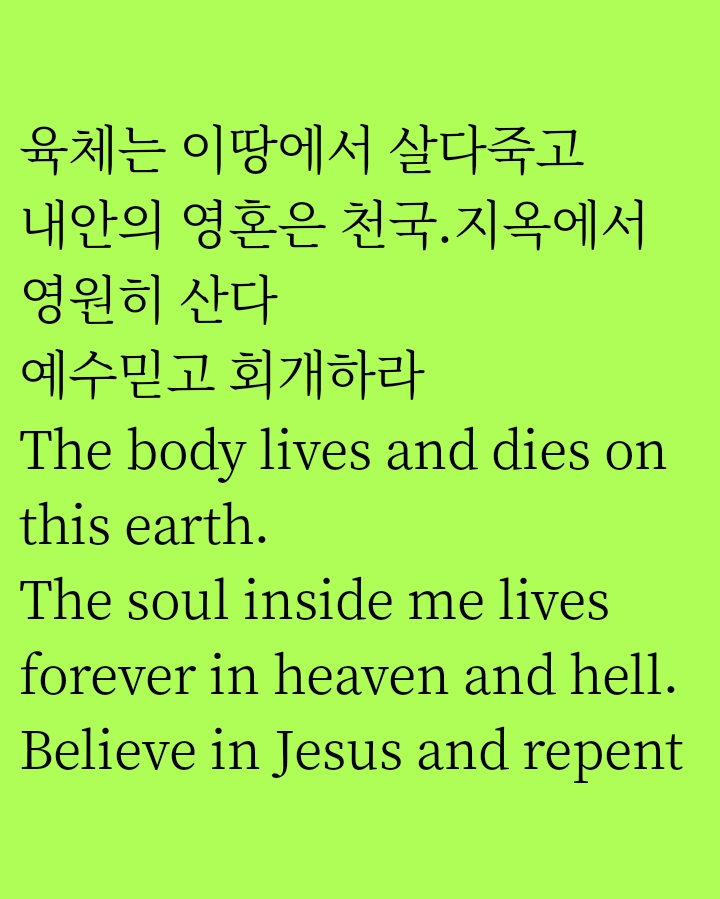육체는 이땅. 영혼은 천국.지옥에서 산다 작성자최대복목사|작성시간24.11.10|조회수45 목록 댓글 0 글자크기 작게가 글자크기 크게가 다음검색 현재 게시글 추가 기능 열기 북마크 공유하기 신고 센터로 신고 댓글 댓글 0 댓글쓰기 답글쓰기 댓글 리스트