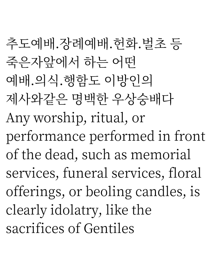 죽은자앞에서 하는 모든것은 우상숭배 작성자최대복목사|작성시간24.11.10|조회수54 목록 댓글 0 글자크기 작게가 글자크기 크게가 다음검색 현재 게시글 추가 기능 열기 북마크 공유하기 신고 센터로 신고 댓글 댓글 0 댓글쓰기 답글쓰기 댓글 리스트
