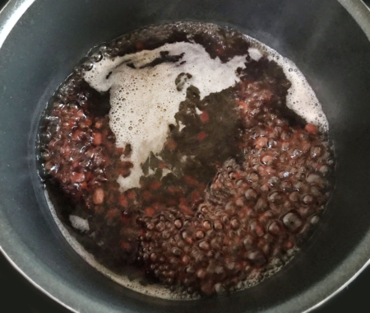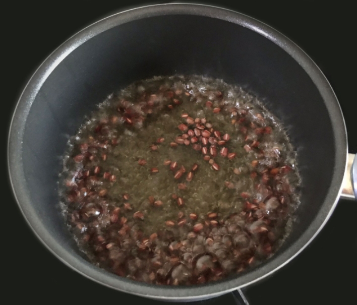 씻은 팥은 물에 넣어 센 불에 끓이고 물이 끓어오르면