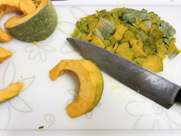 단호박은 자르기 쉽게 씻어서 전자레인지에 5분 정도 돌려줬어요.