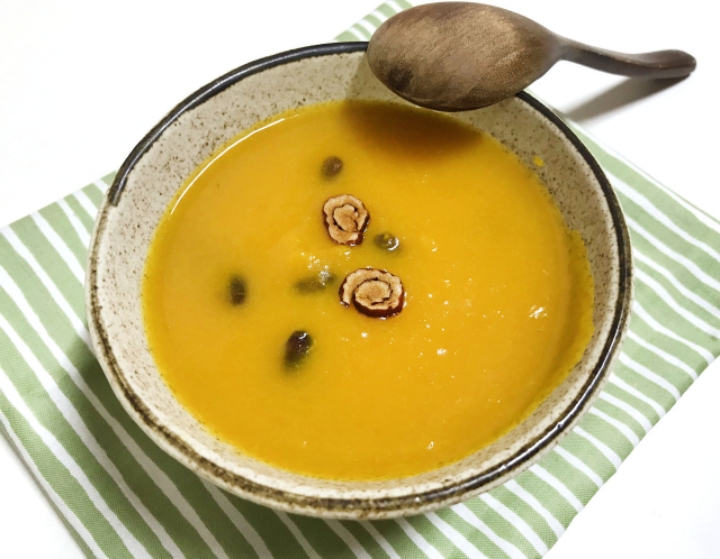 영양만점 단호박에 팥을 넣어 달달한 단호박죽을 만들어 봤어요.