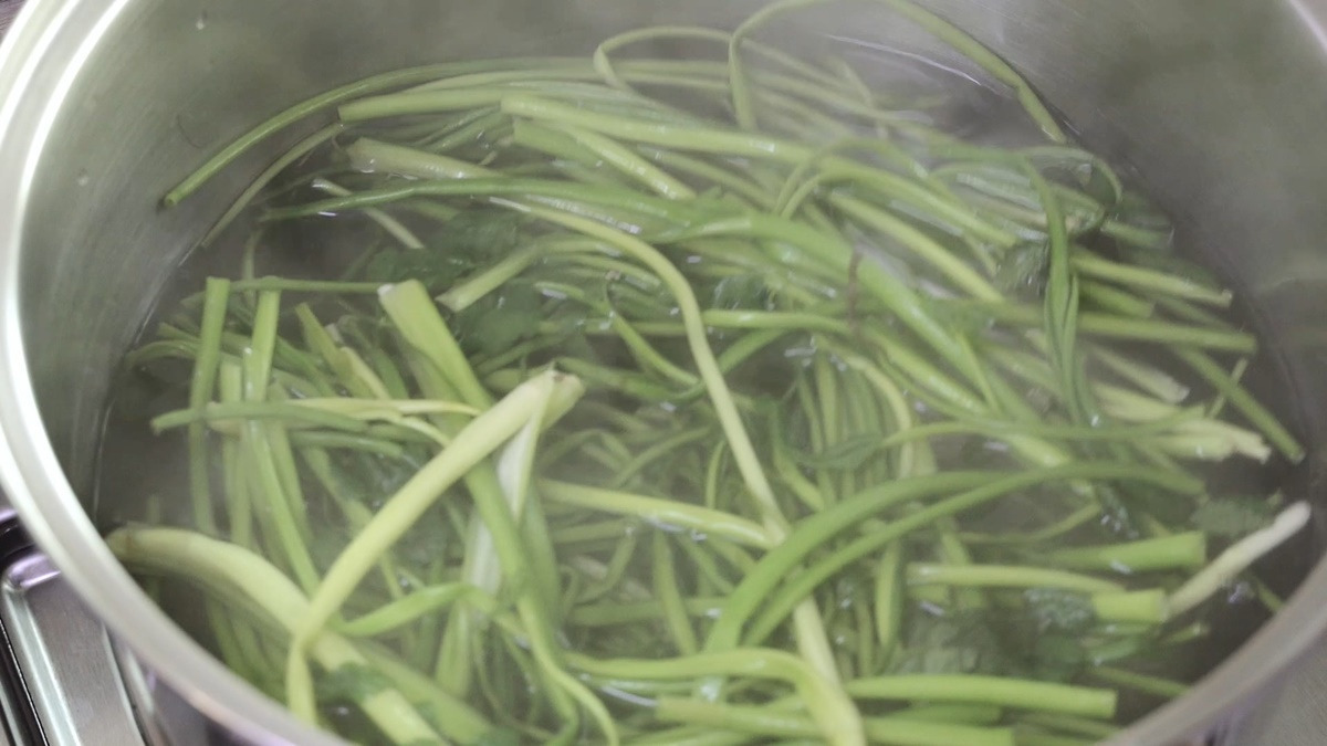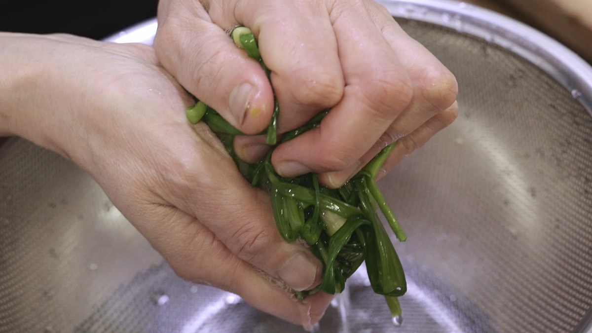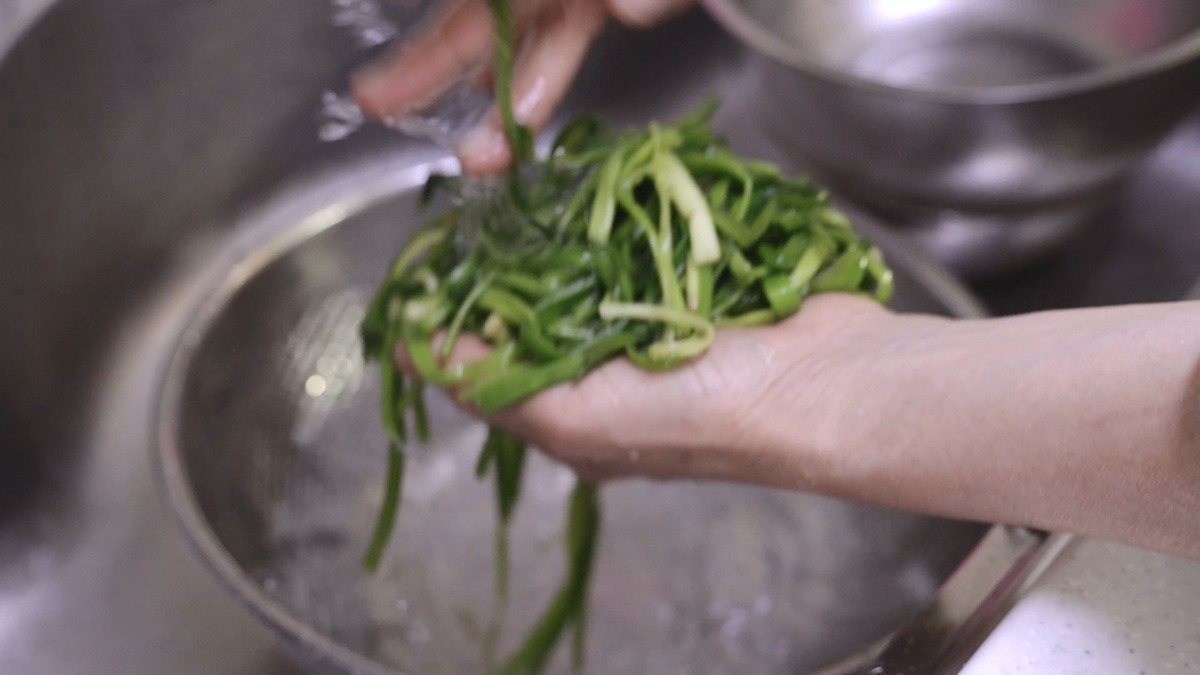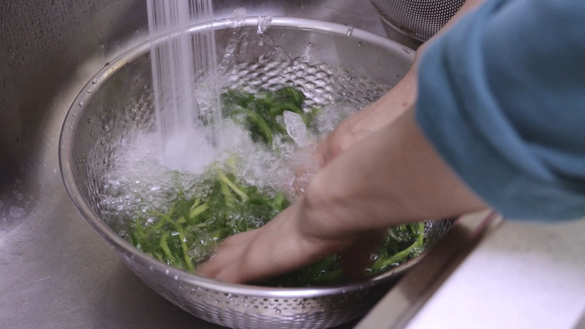 한번 데친 미나리는 바로 찬물에서