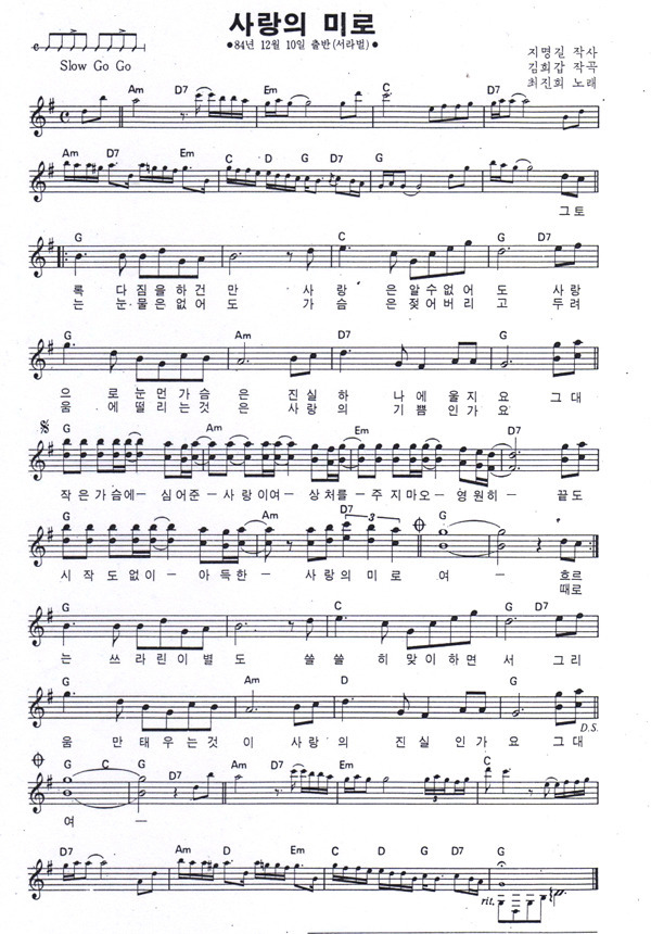 최진희님의 대표곡 "사랑의 미로"를 선정