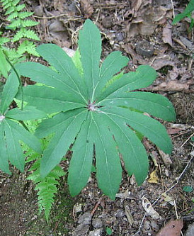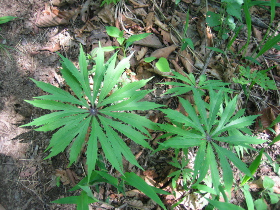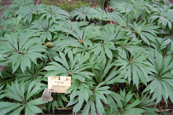 우산나물은 가장자리가 잘게 갈라진 잎 5~9장이 돌려나고