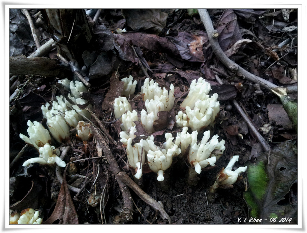 광합성을 하지 않는 식물로 흰색을 띄어 언뜻 보기에 버섯모양 같으나 그것도 꽃이라고