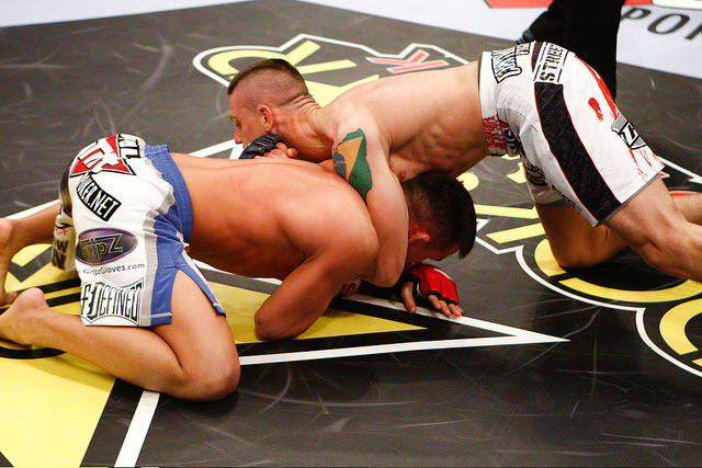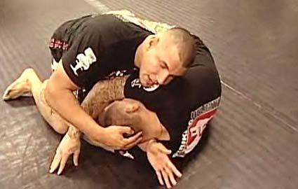 그리고 상대의 목 부위에서 다른 팔과 트라이앵글을 엮어 주는 거죠.