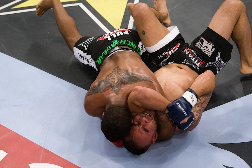 다스와 아나콘다는 프론트 헤드락 포지션(길로틴 걸 때 포지션)에서 사용하도록 변형된 암트라이앵글 초크입니다.