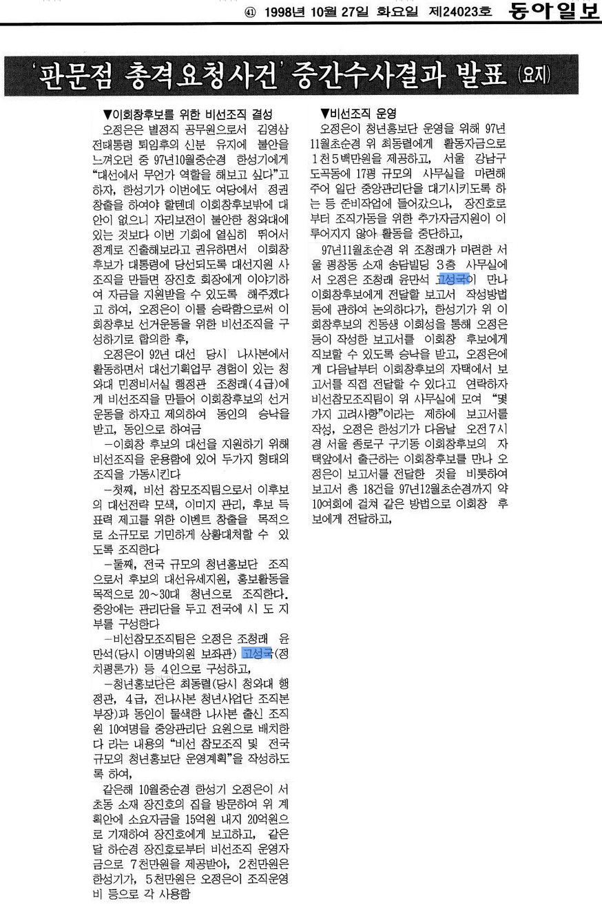 1998년 이회창 총풍 사건 당시