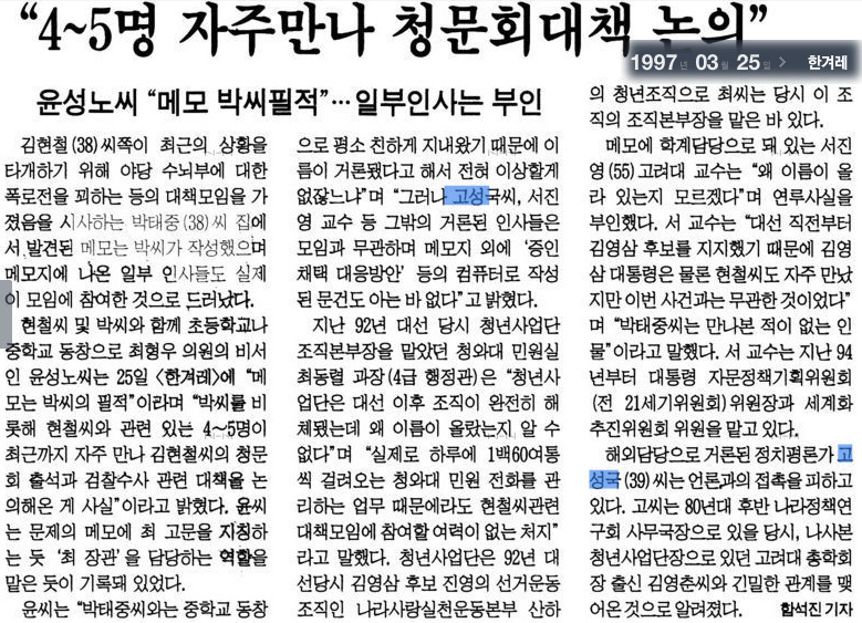 1997년 김영삼 前 대통령의 차남 김현철과의 인연