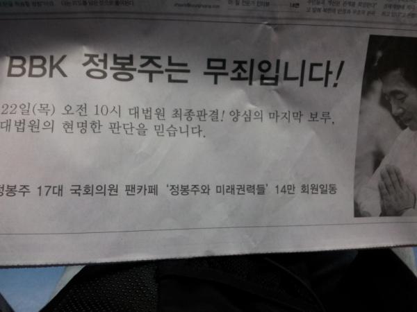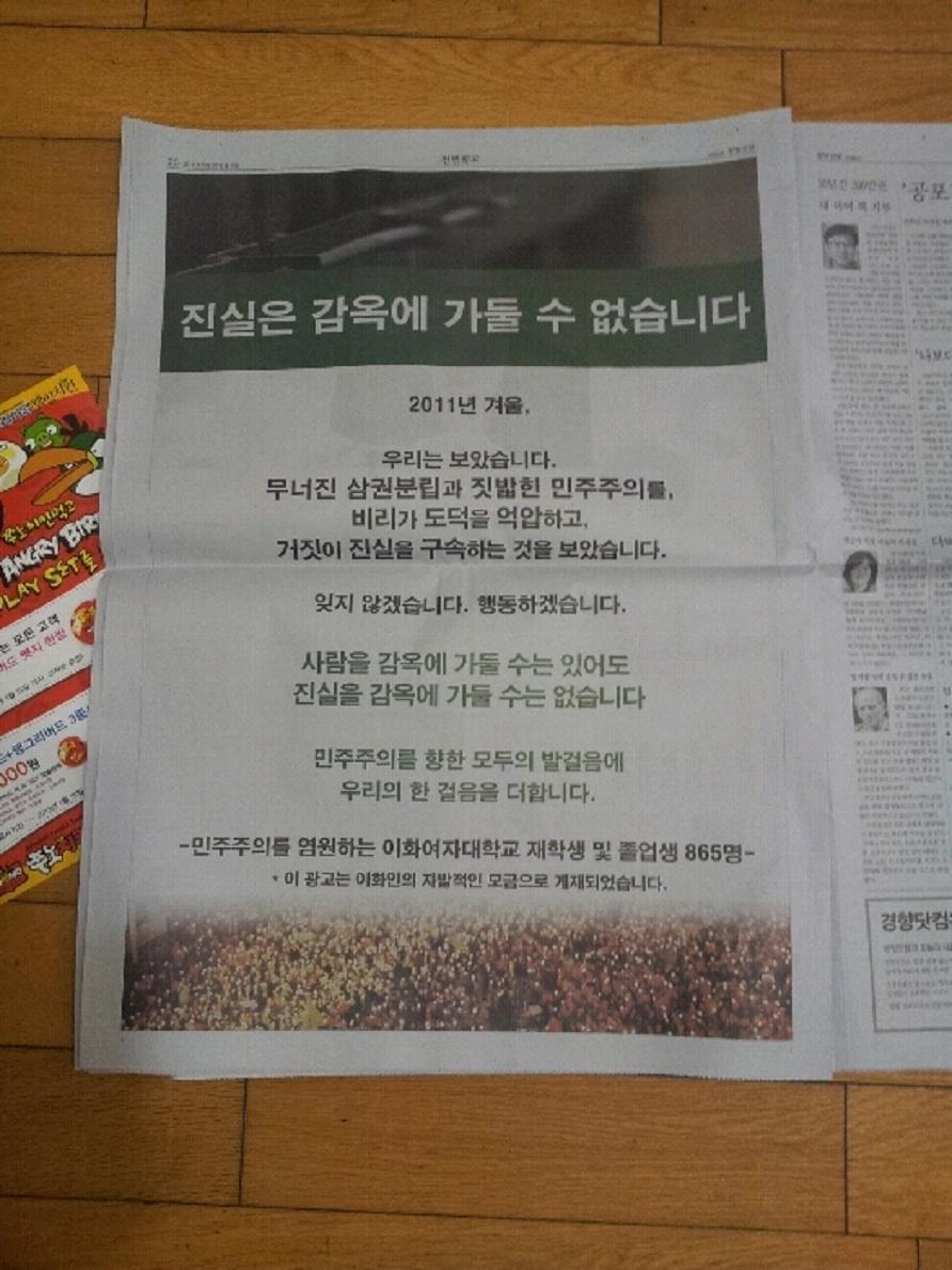 봉도사 유죄확정 이후 이화여대 학생들이 냈던 전면 광고