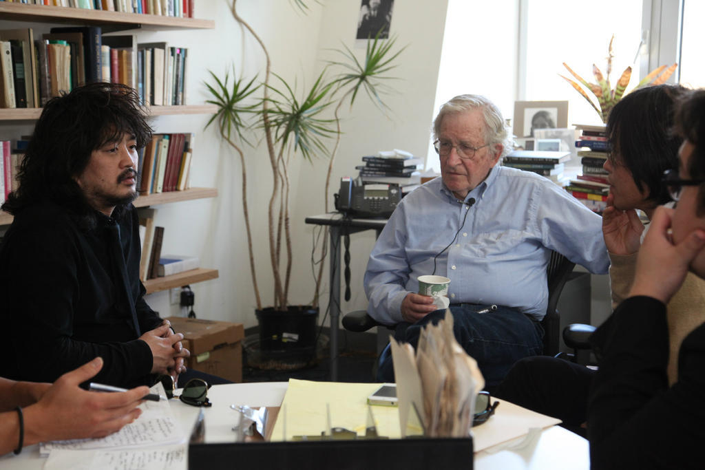대선 전 미주 공연 당시 촘스키를 만나 격려를 듣는 나꼼수